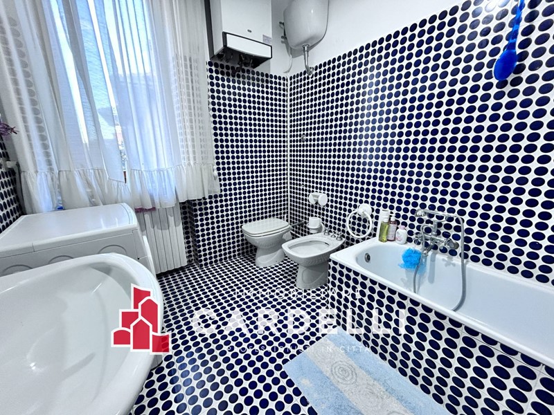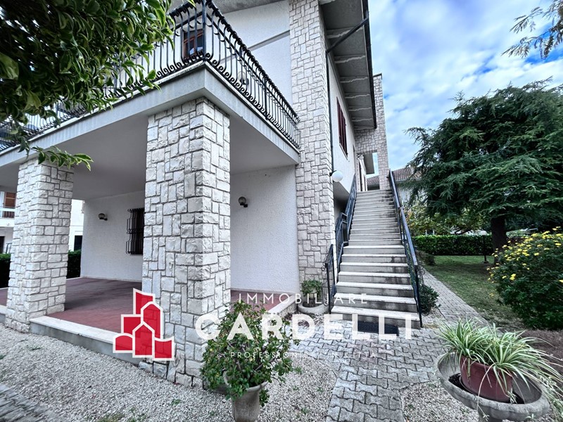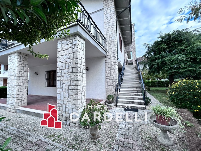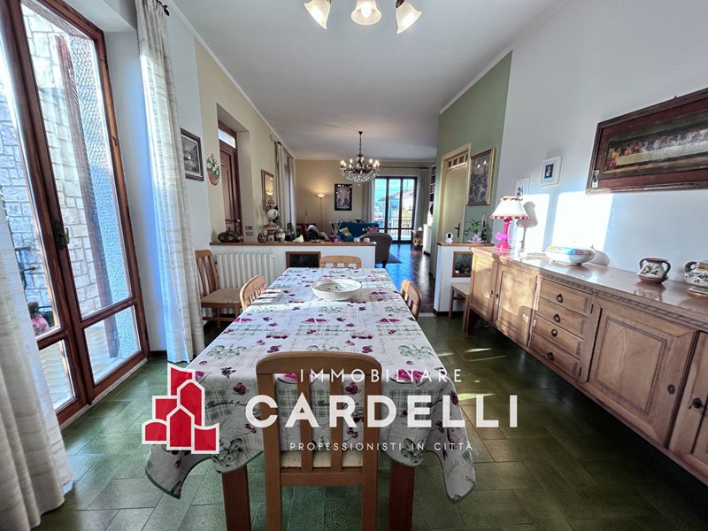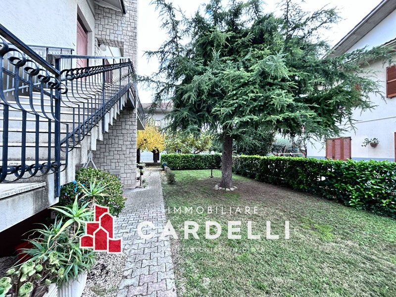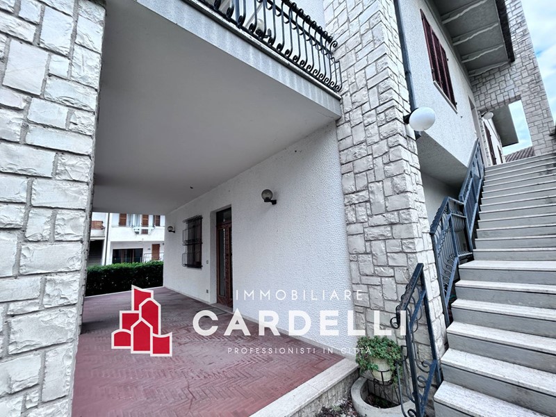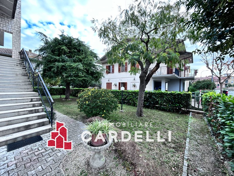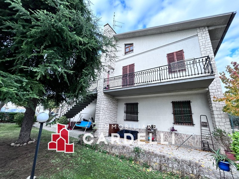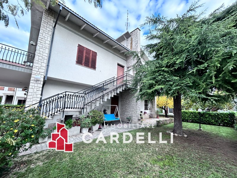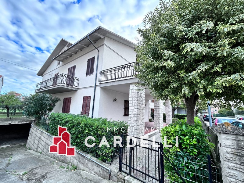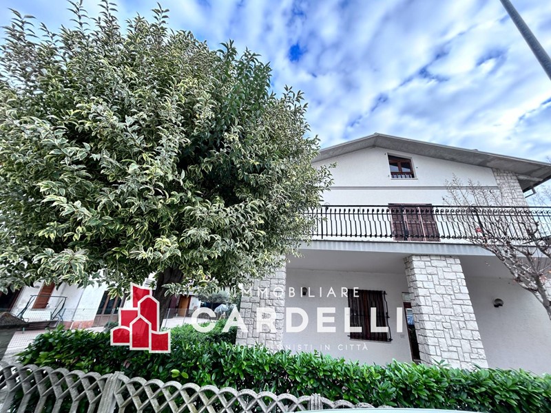 Immobiliare Cardelli propone a Montecassiano in zona residenziale e tranquilla, spaziosa casa singola con giardino e garage di proprietà, attualmente divisa in due appartamenti con ingressi indipendenti: