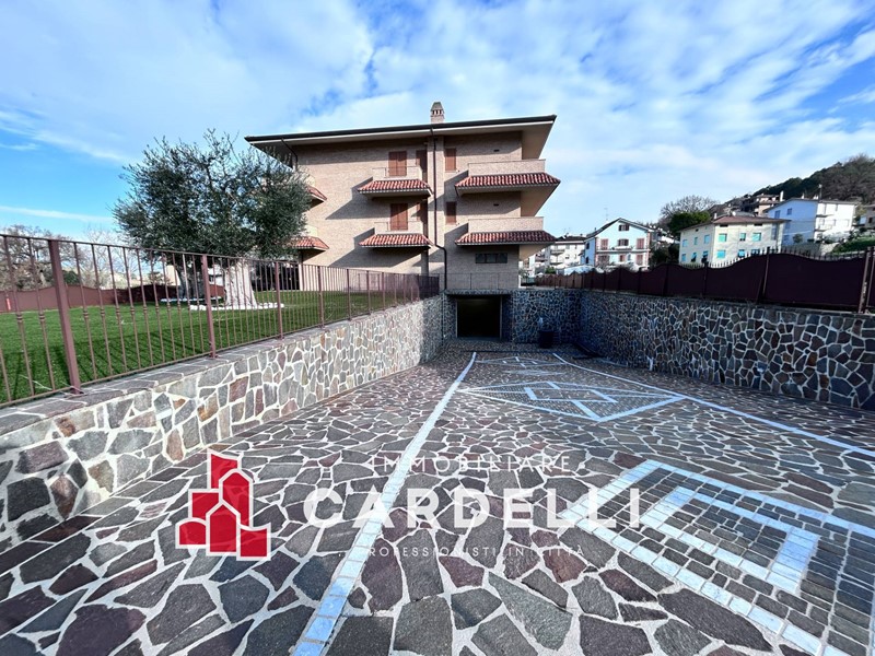 Piano interrato di mq 310 - garage open space con elegante ingresso rivestito in pietra