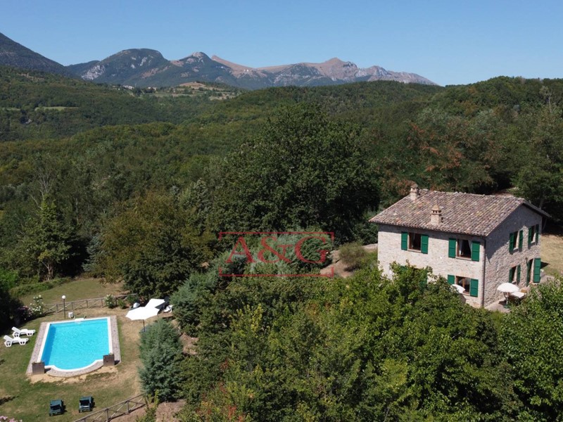 Casale con dependance, terreno e piscina, nel cuore del Parco Nazionale dei Monti Sibillini ad Amandola, Fermo, Marche, Italia.