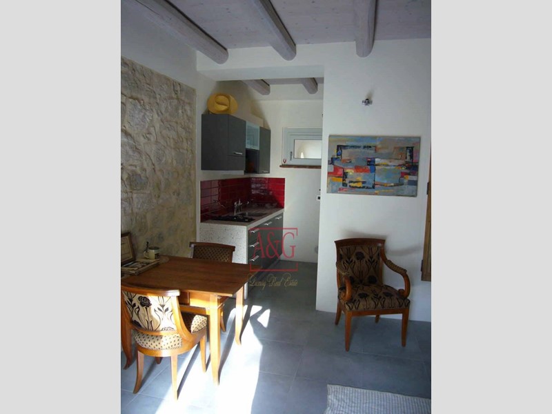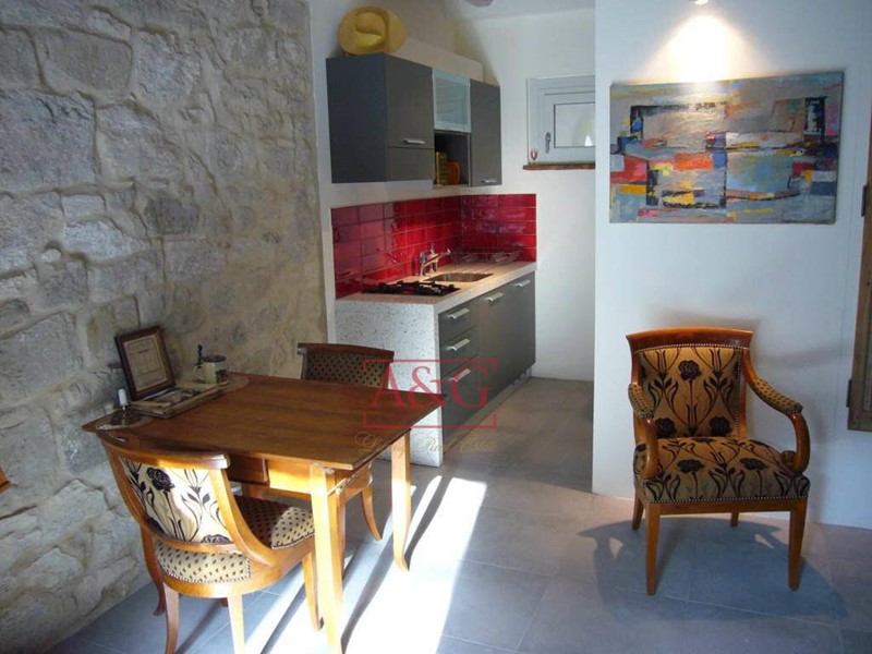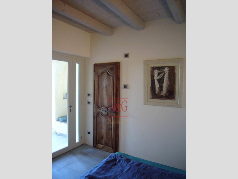 L'immobile è dotato di un cancello automatizzato con videocitofono ed è disposto su due livelli così composti: al piano terra camera matrimoniale per ospiti con bagno esclusivo, piccolo appartamento con camera matrimoniale , soggiorno con angolo cottura e bagno, garage, cantina e centrale termica; al piano primo, ingresso, cucina ben attrezzata , camera matrimoniale con bagno interno, soggiorno doppio con camino Luigi XIV, bagno ed antibagno, portico con ampio terrazzo .Il riscaldamento è a pavimento.