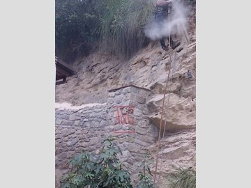 La proprietà è valorizzata da un terreno di 8 ha comprendente un boschetto, un uliveto, e varie piante da frutto (ciliegie, pesche, etc..) dove insiste un piccolo fabbricato su due livelli attualmente usato come magazzino.