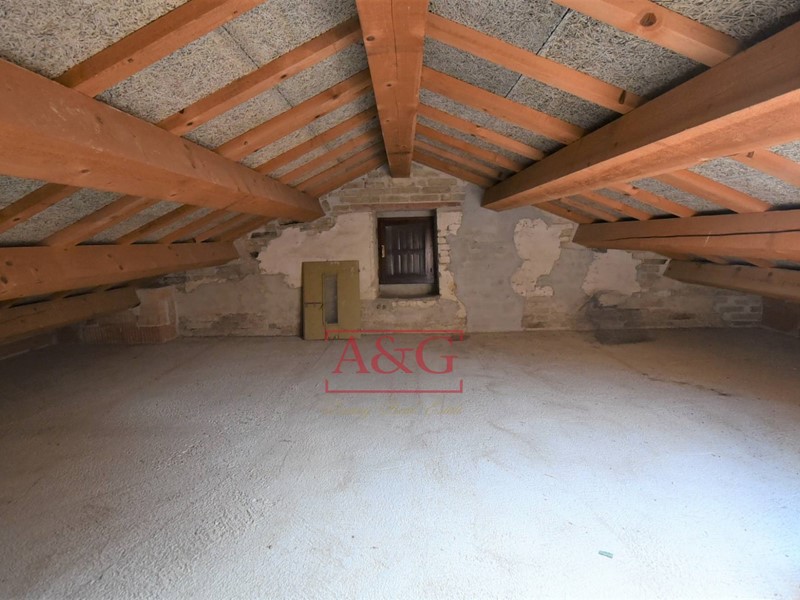 Il casale è composto da due strutture abitative adiacenti. La prima, più importante, è stata completamente ristrutturata e resa abitabile. La seconda, dove viveva la servitù, è ancora allo stato grezzo. La struttura principale si sviluppa su tre piani oltre alla soffitta. Al piano terra, ci sono due locali: uno utilizzato come laboratorio e laltro come cantina e rimessa per mezzi. Salendo al piano primo, troviamo un salotto, un disimpegno, una sala pranzo con cucina, una camera matrimoniale e un bagno. Al piano secondo, un ampio disimpegno, tre camere e un altro bagno. Infine, al piano terzo, cè unampia e comoda soffitta.