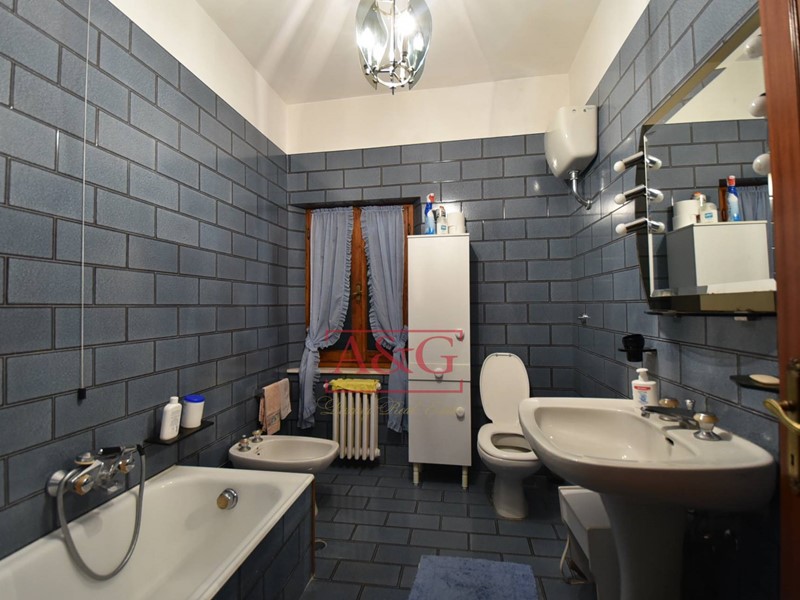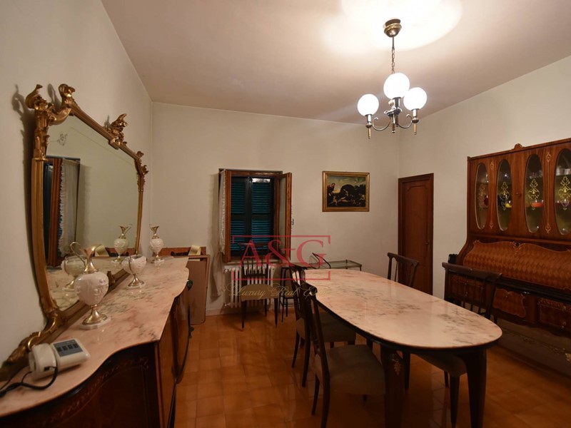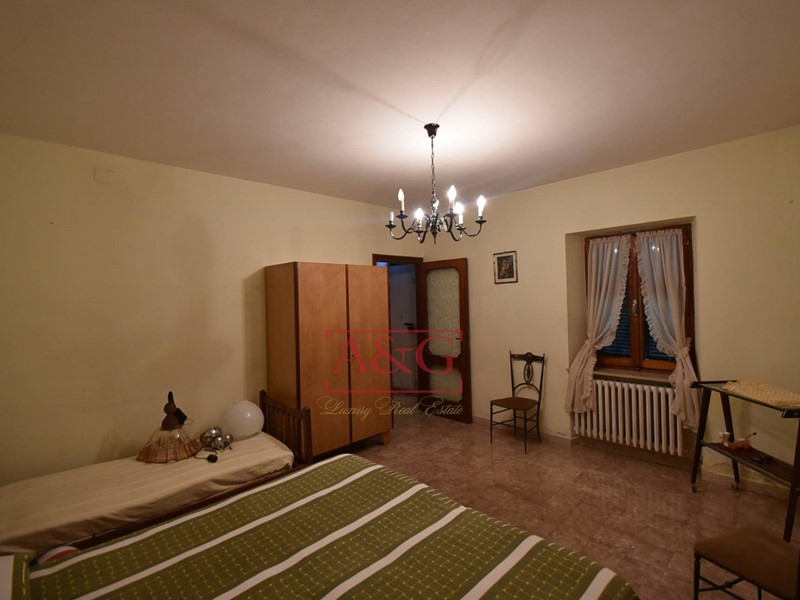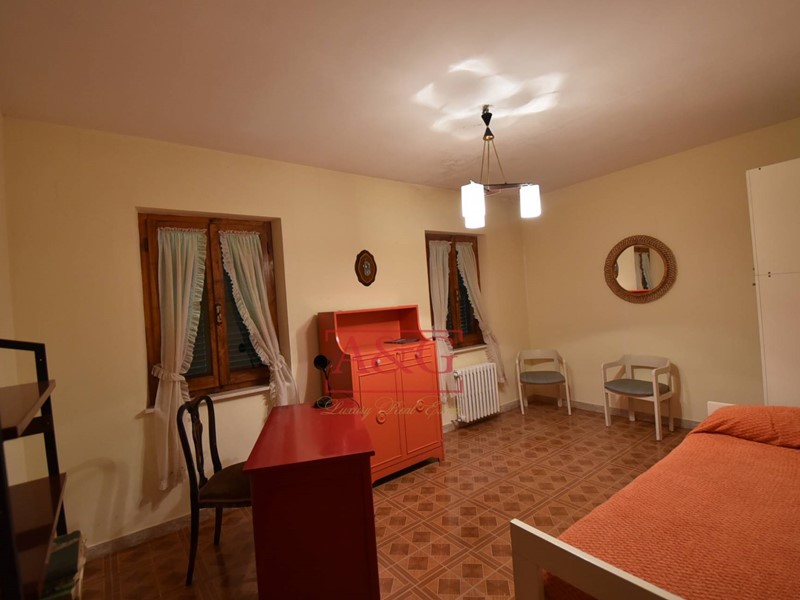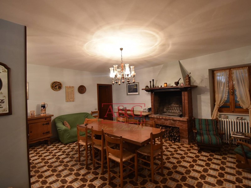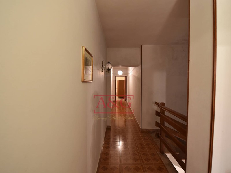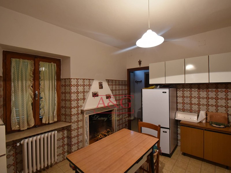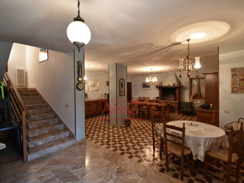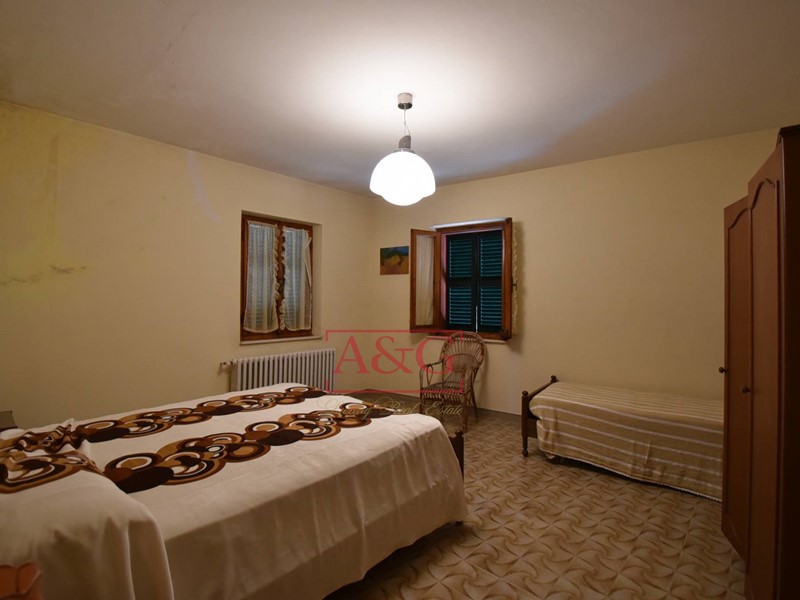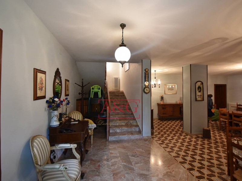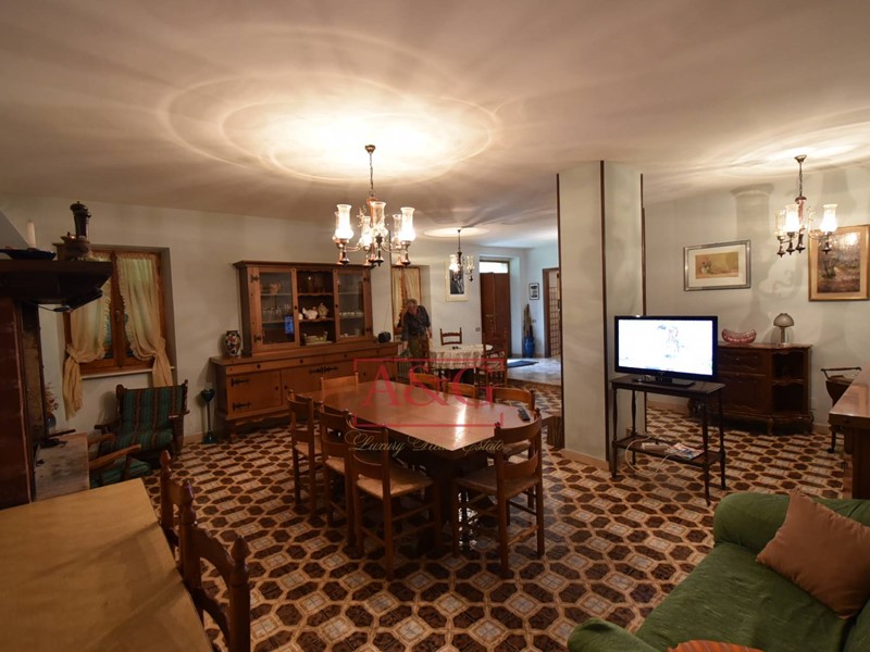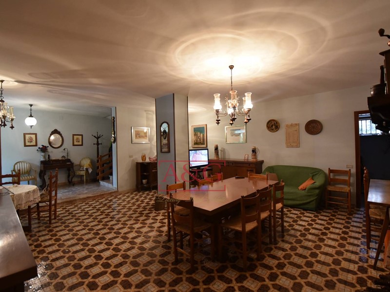 L'abitazione si sviluppa su tre livelli: al piano terra un grande soggiorno con camino, sala pranzo, cucina, bagno ,cantina, magazzino e fondaco, poi da una scala interna si raggiungono i piani primo e secondo dove sono state ricavate 9 comode camere e due bagni. La proprietà, costruita anteriormente al 1967, è stata sempre ben manutenuta, ad oggi è ancora abitabile ed in in buono stato, è connessa ai servizi di acqua, luce e di riscaldamento (gasolio).