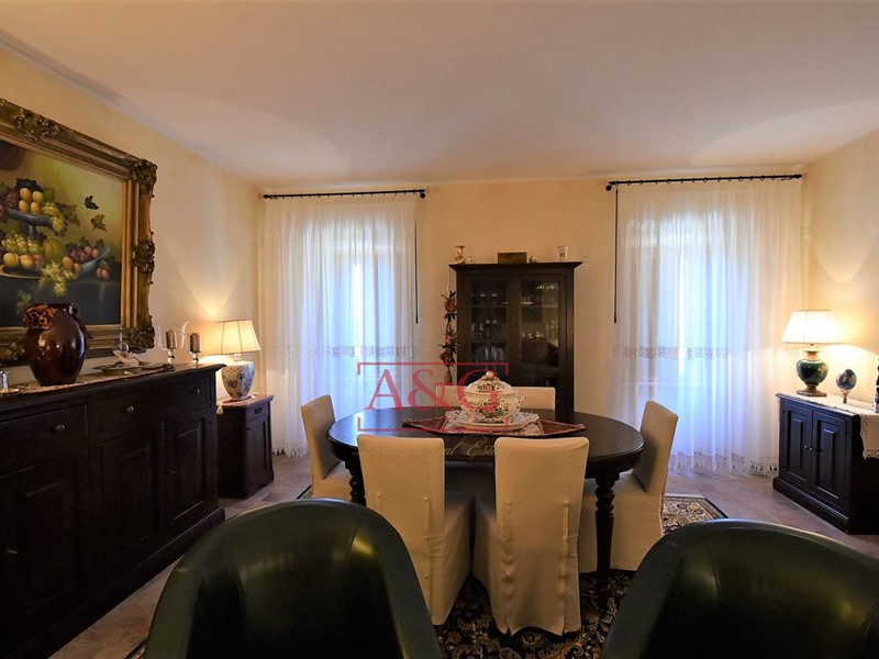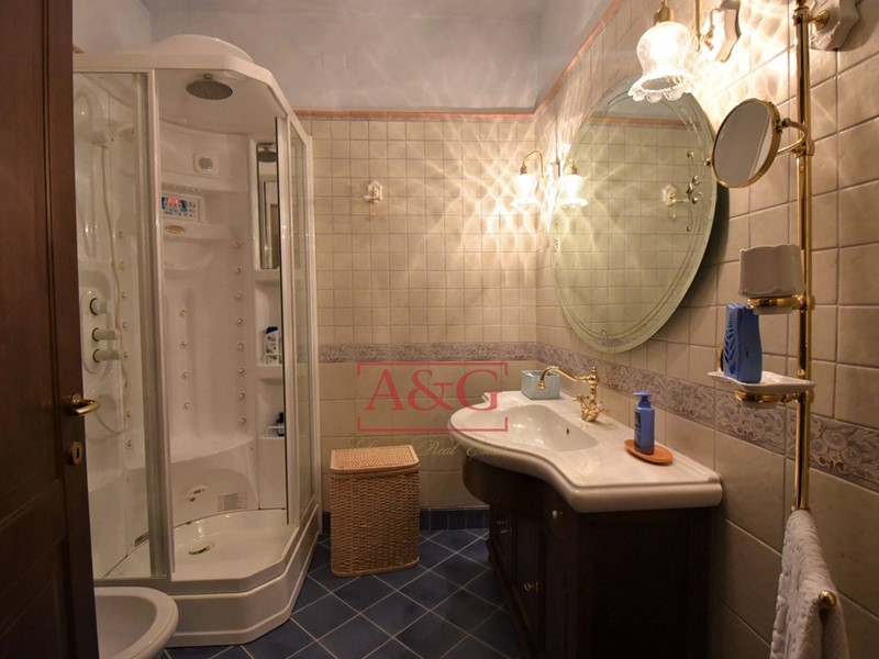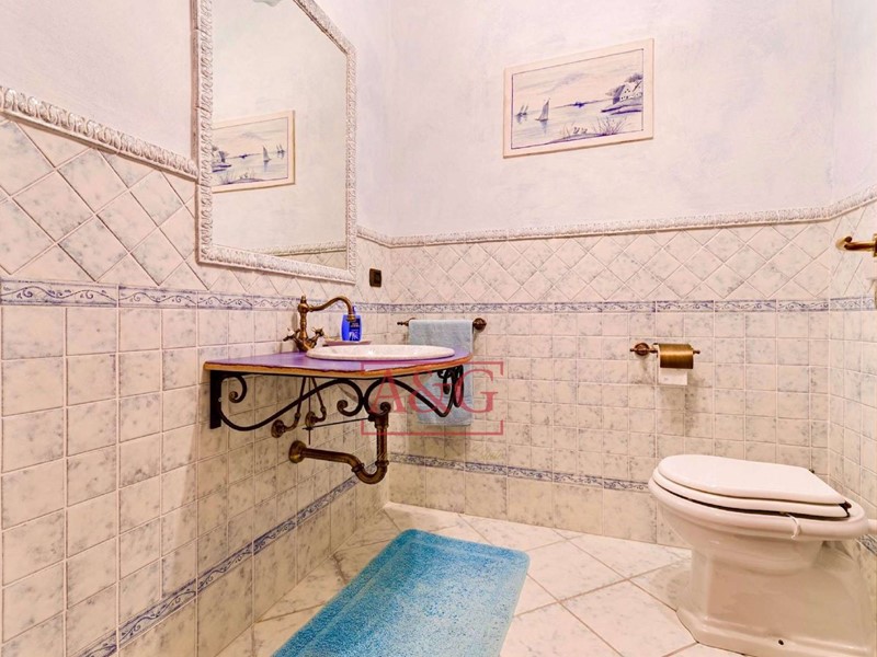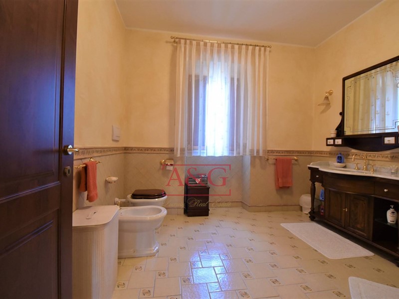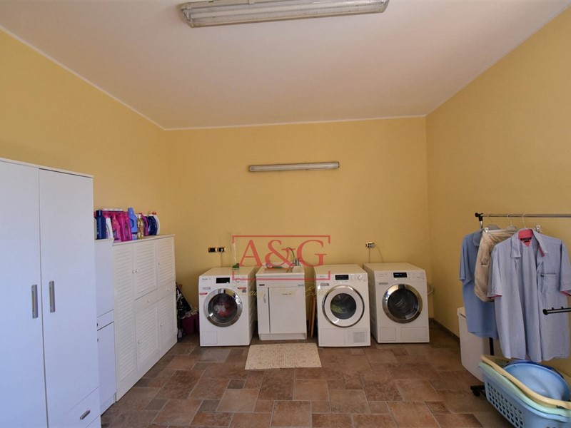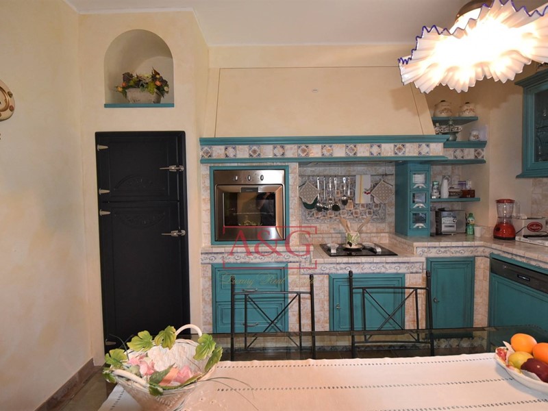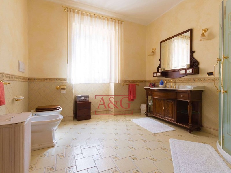 La villa è così composta : al piano interrato una elegante cantina con nicchie per stoccare i migliori vini; alpiano terra (sopraelevato) comprende il disimpegno, la cucina, il soggiorno, due camere da letto, due bagni, lavanderia, i locali garage e loratorio (chiesetta privata adatta al culto); il piano primo unitamente al piano secondo( mansarda) è composto da un grande soggiorno, cucina abitabile, tre camere da letto, tre bagni ed ampio terrazzo ad uso veranda. Limmobile comprende il vano scala con un moderno ascensore , un importante giardino con piante secolari di pregio, delimitato da un muro in pietra con sovrastante ringhiera in ferro battuto, costruita da artigiani locali .