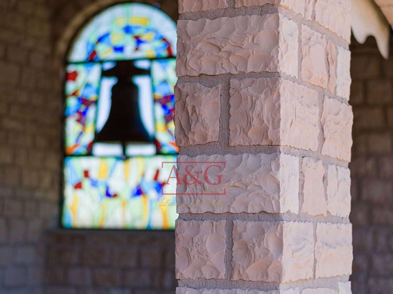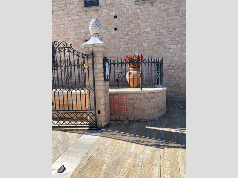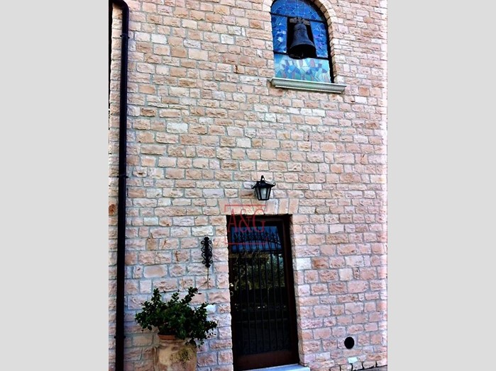 Il fabbricato di che trattasi è stato completamente ristrutturato mediante la sistemazione delle murature di notevoli spessori con nuovo rivestimento massello ed a faccia vista in pietra rosa delle cave locali, conciata a mano pietra per pietra.