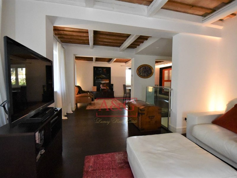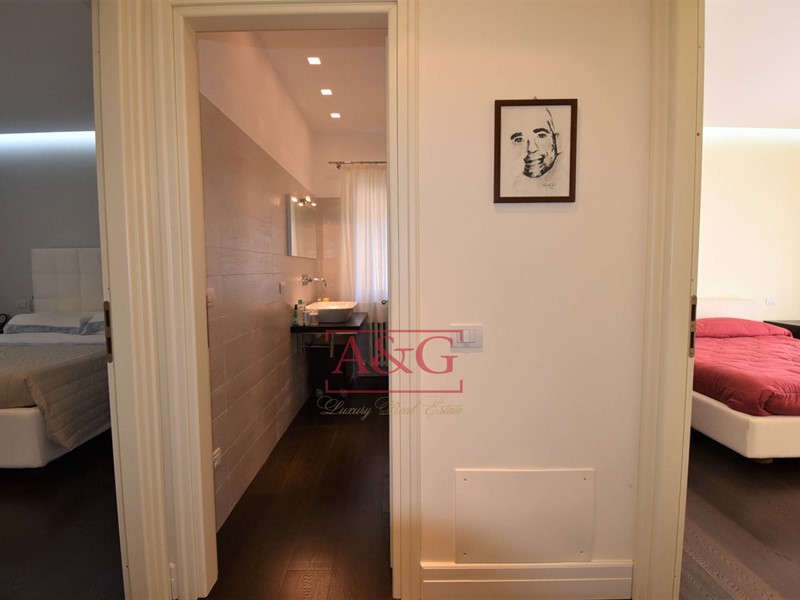 al piano primo invece un elegante salone , disimpegno , un bagno con doccia in cristallo e cromoterapia ,due camere matrimoniali e studio; nel piano sottotetto si trova una soffitta praticabile raggiungibile da una scala retrattile.