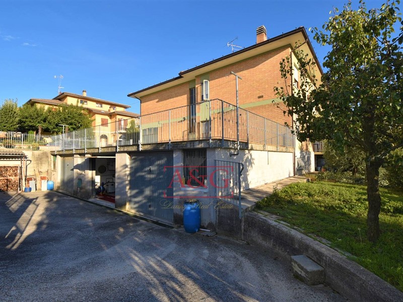 La proprietà costituita da un appartamento posto al piano primo di un edificio bifamiliare , composto da ingresso , soggiorno con camino, cucina abitabile , disimpegno, due camere matrimoniali, bagno e balconi; al piano terra uno studio con antibagno e bagno , attualmente affittato, un giardino -orto e un lastrico solare carrabile , dotato di cancello automatizzato ,in comproprietà; al piano seminterrato un comodo garage attualmente usato anche come rustico ed un fondaco. Nel piano seminterrato c'e anche un camino condominiale da usare a piacimento.