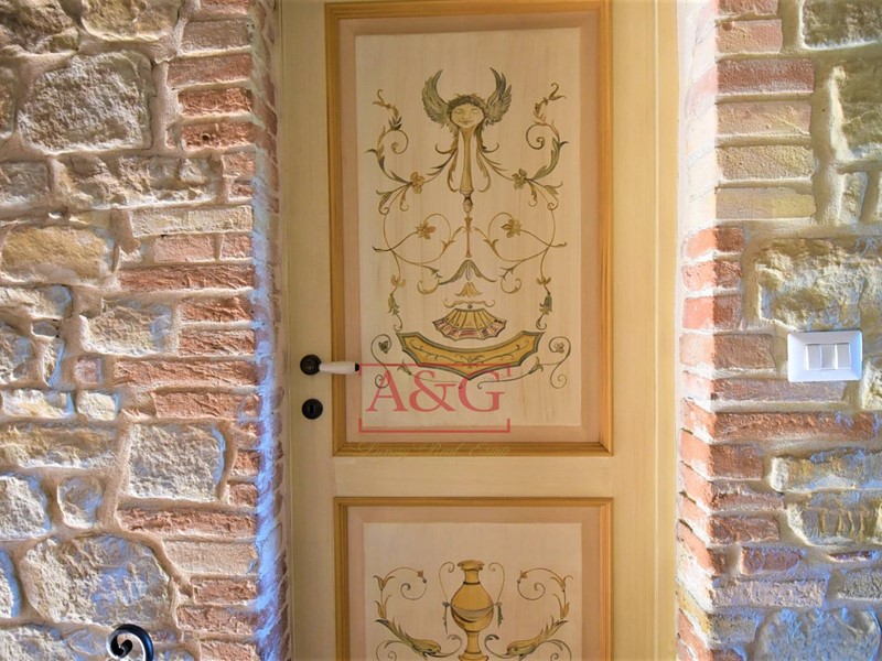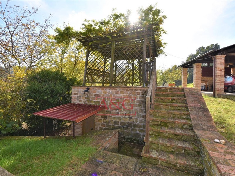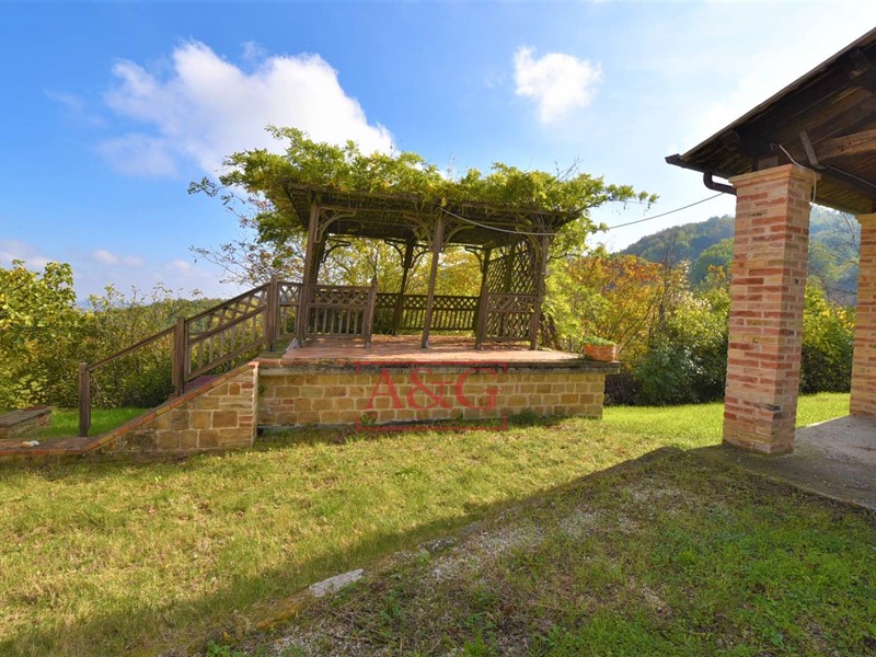 C'è altresi un posto auto coperto e una pergola sopraelevata al di sopra di una cantina di 30 mq; il tutto collegato ed unito tramite mura in pietra fatta a mano . Luce ed acqua sono stati portati all'esterno . Il terreno produce molti frutti quali pere, fichi, mele, ciliege e prugne. Le viste sono quelli irrestibili delle tipiche vallate italiane fino al mare Adriatico.