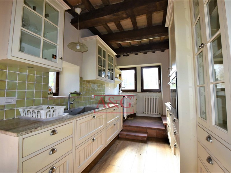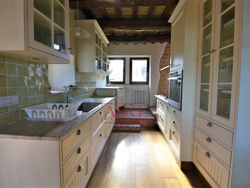L'ampia cucina in stile country è stata studiata per essere adattata allo spazio a disposizione che si apre sulla zona pranzo con accesso ai 2 patio , che godono di di doppia esposizione. Nello stesso piano , c'è anche uno studio/libreria con mensole a muro ed un soggiorno con un camino in pietra ricostruito.