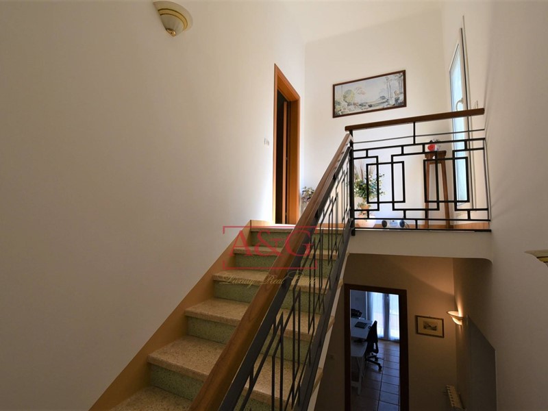 La casa ristrutturata con ottime rifiniture è cosi composta: al piano terra ingresso, soggiorno, disimpegno, bagno, cucina abitabile, sala pranzo, cantina e portico; al piano primo disimpegno, 4 camere matrimoniali, studio, 2 bagni, lavanderia e balcone; al piano secondo una comoda soffitta abitabile e polifunzionale con accesso al terrazzo panoramico.