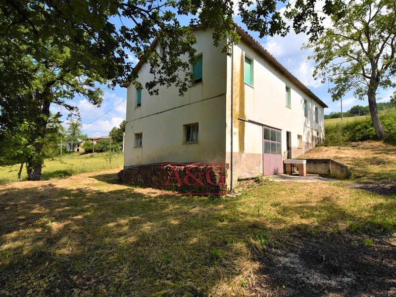 La A&G Immobiliare propone, in esclusiva, interessante casa di campagna su due livelli con accessorio agricolo e corte di 3000 mq circa, ubicata nelle colline maceratesi. La casa è cosi composta: al piano terra ci sono due locali ad uso rimessa attrezzi agricoli, al piano primo c'è l'abitazione, composta da ingresso con balcone, cucina-soggiorno, due camere e un bagno.
