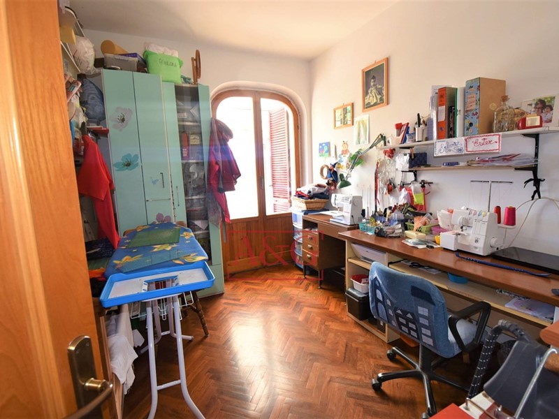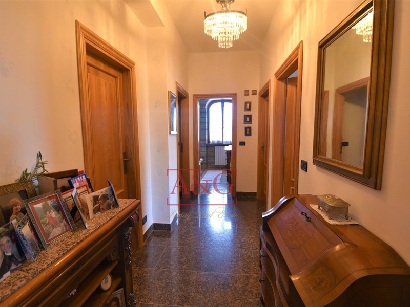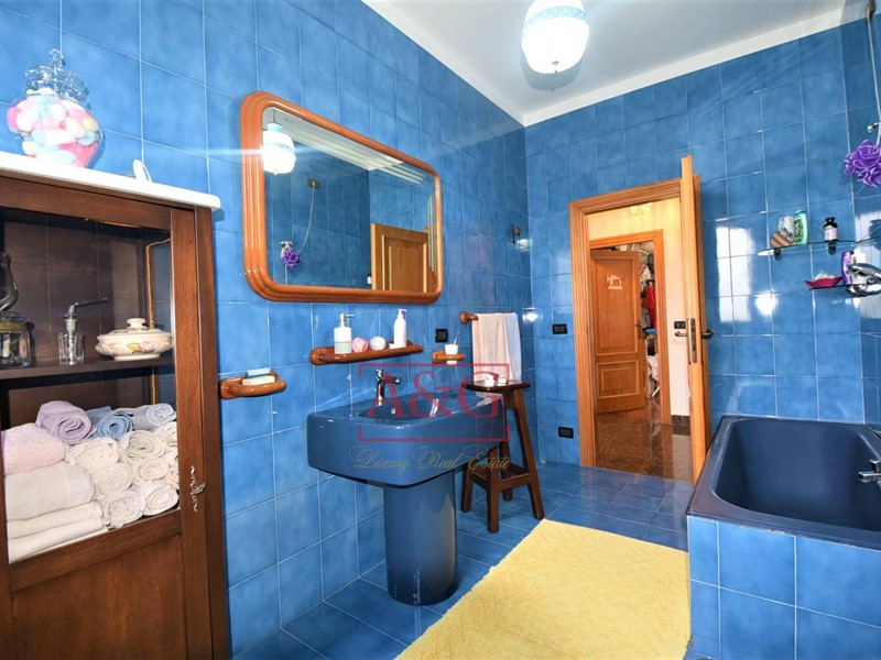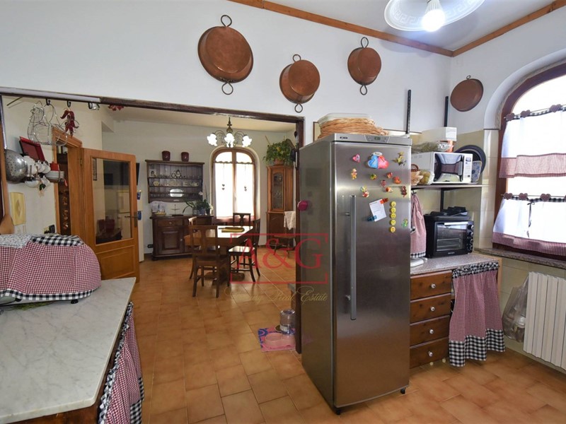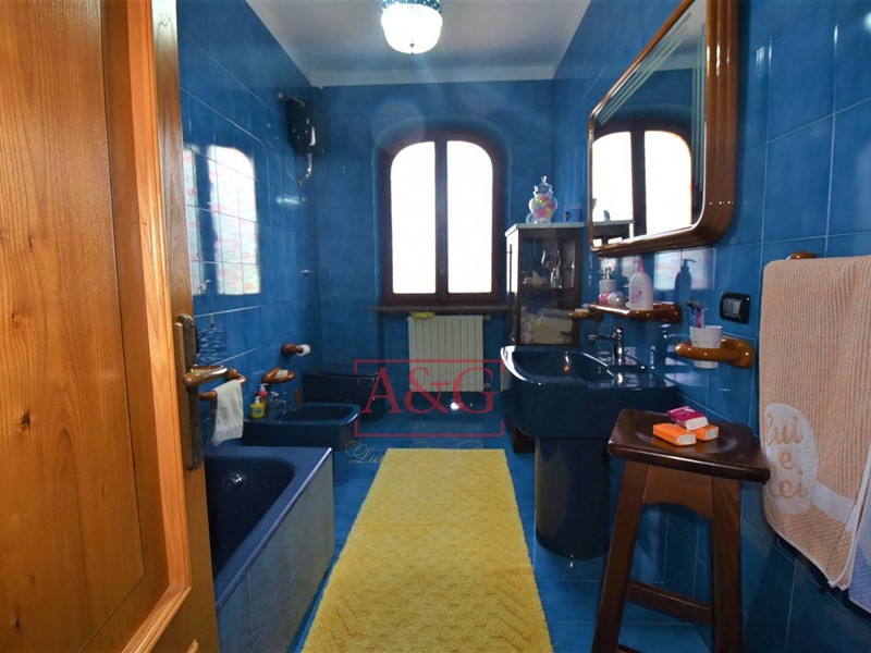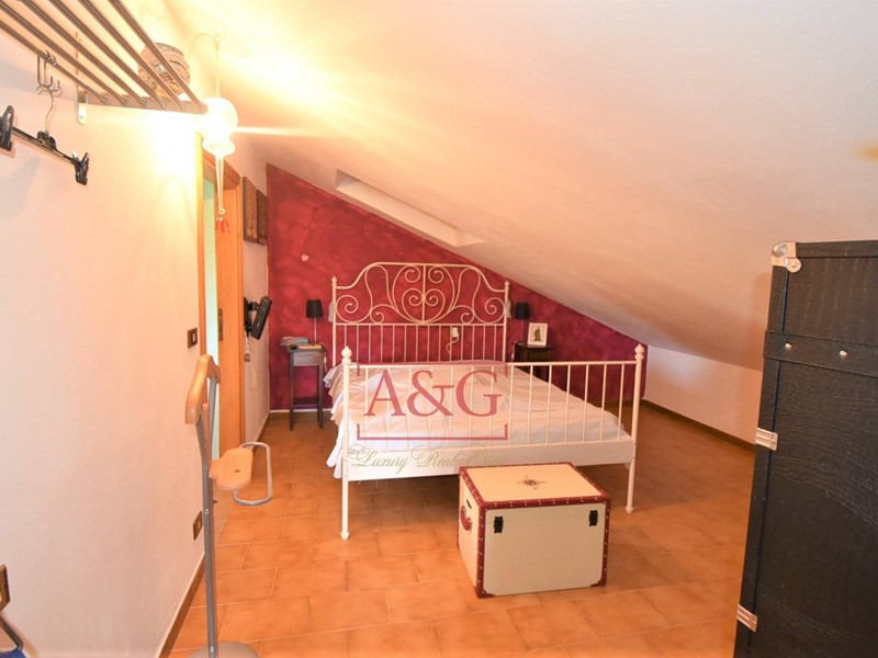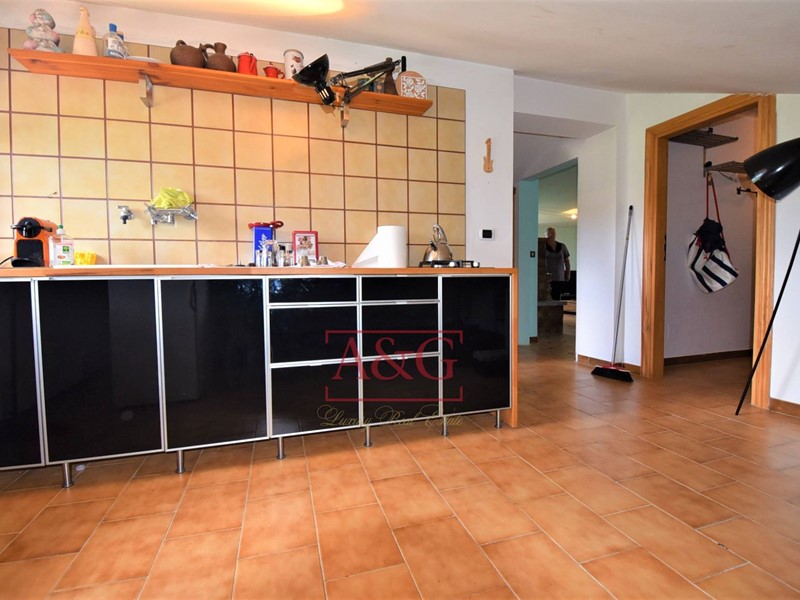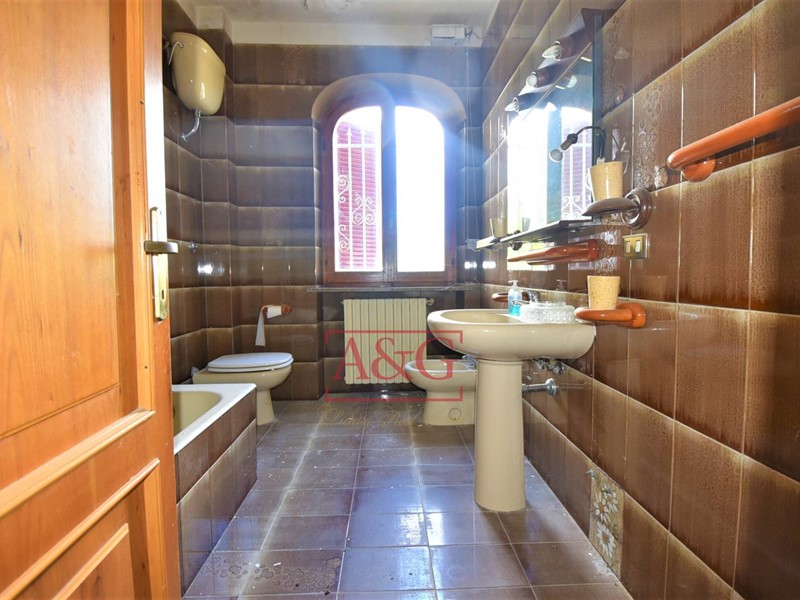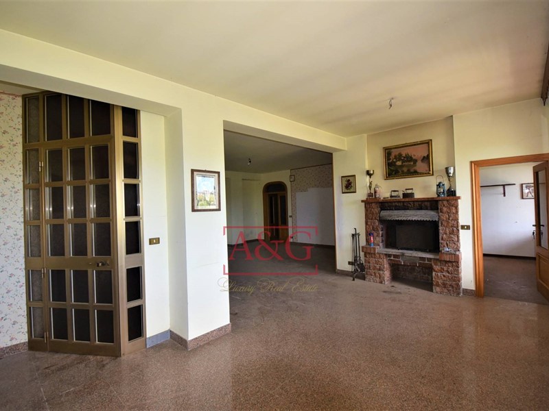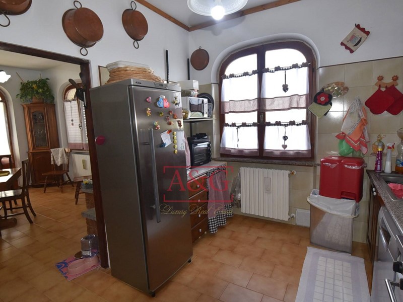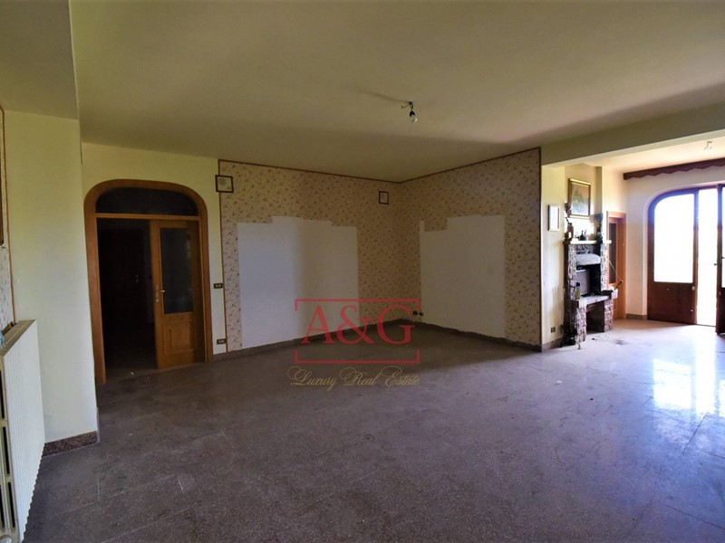 Struttura e distribuzione: La villa si sviluppa su tre livelli. Al piano terra, troverai un ampio soggiorno con camino, uno studio, un bagno con cabina doccia, una cucina e laccesso a una veranda di 40 m². Una scala a chiocciola elegante conduce ai piani superiori. Nel seminterrato, parte del quale è adibito a garage e locale tecnico, cè un grazioso edificio rustico di circa 150 m² con camino a legna, locali di servizio e ripostigli.