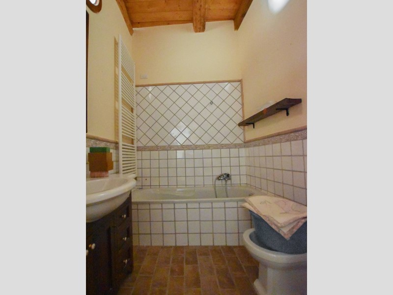 L'immobile è stato ristrutturato con grande gusto e certosina attenzione ai parametri di sicurezza, con particolare riguardo per gli standard antisismici. Dominano il legno, di cui sono composti tutti i soffitti con travi a vista, nonchè le pianelle ed i mattoni di recupero. Un progetto che conserva efficacemente il fascino della dimora con un percorso storico significativo. Gli infissi sono attrezzati con doppio vetro e dotati di persiane. I bagni risultano piastrellati in apprezzabile coerenza con lo stile celebrato, così come la cucina in muratura che è già attrezzata e pronta all'uso.