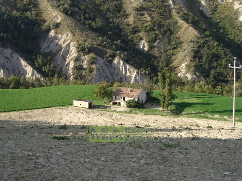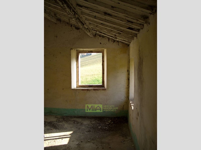 MONTERUBBIANO proponiamo la vendita di tipica casa colonica marchigiana su due piani con scala esterna da ristrutturare mq totali 240 e annesso agricolo.