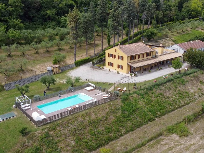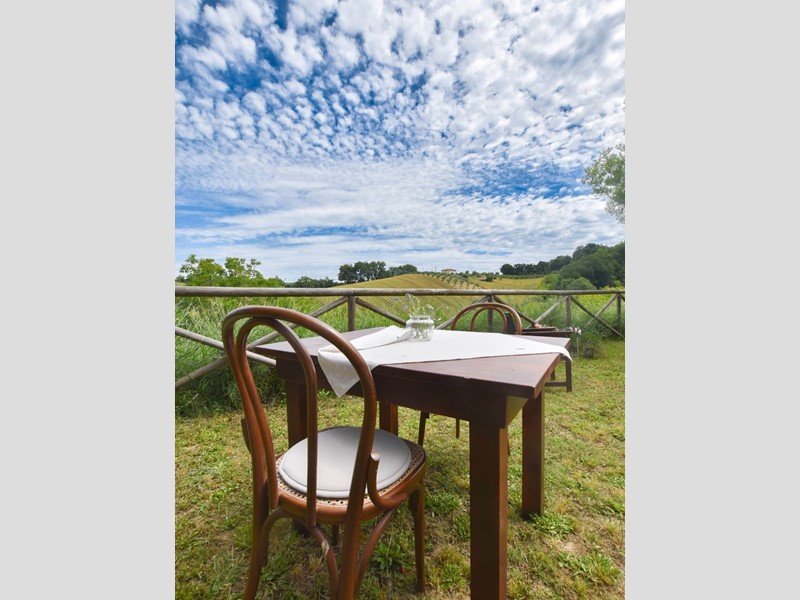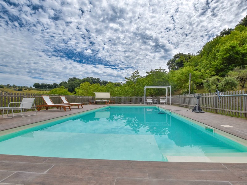Dispone inoltre di due edifici annessi di 925 mq circa con possibilità quindi di ampliare la struttura con fattoria didattica, spa ed altro. La piscina realizzata nel 2018 offre un'oasi di tranquillità e pace senza tempo. Conclude la proprietà un terreno di 6 ha con 350 piante di ulivi produttivi.
