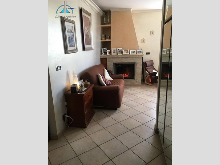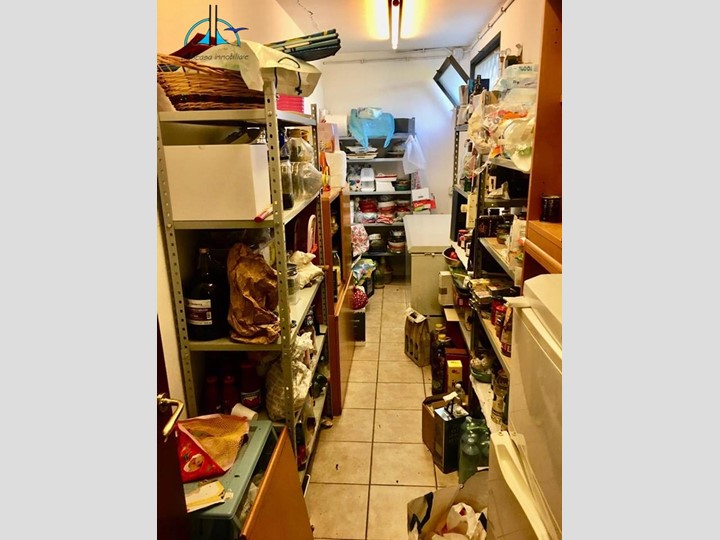 Il piano inferiore ospita un ampio salone con camino, cucina con dispensa, camera, bagno, locale lavanderia e garage.