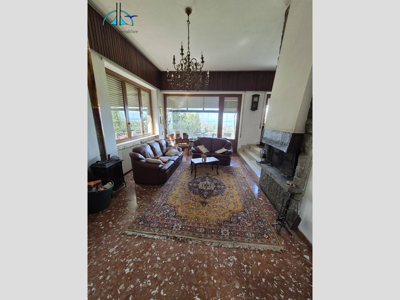 - Piano primo: ingresso, luminoso salone doppio con camino a vista ed affaccio su terrazza panoramica, corridoio, 3 camere da letto, 2 bagni, cucina abitabile, altro terrazzo e portico.