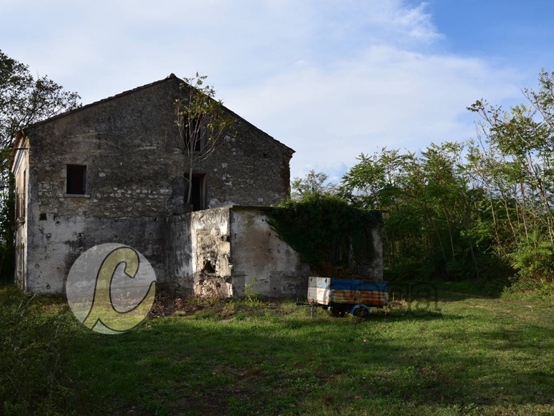 Vende casale con annesso fabbricato agricolo in Pignataro Interamna in via Santo Janni. La prima struttura diruta si sviluppa su 3 livelli di cui il piano terra composto da sala da pranzo, cucina, n° 2 cantine ed un altro vano contenente la scala per il collegamento al piano primo composto a sua volta dal vano scale, n° 3 camere da letto ed un terrazzo, l'ultimo (il sottotetto) presenta un altezza perimetrale di 1 mt. ed una misura sulla linea di colmo approssimativamente di 3,40 mt. Il secondo fabbricato rurale è sviluppato su un unico livello di forma rettangolare suddiviso in 3 vani della lunghezza di 20,60 mt. per una larghezza di 5,50 mt. avente un'altezza perimetrale di circa 3,20 mt. ed una sulla linea di colmo variabile da 3,40 a 5,00 mt. Il terreno suddiviso in varie particelle contigue risulta visivamente un unico appezzamento per complessivi 27.917 mq. circa a destinazione agricola, è presente un ruscello sul lato d'ingresso e la posizione insieme alla morfologia ne esalta la panoramicità.