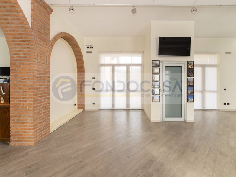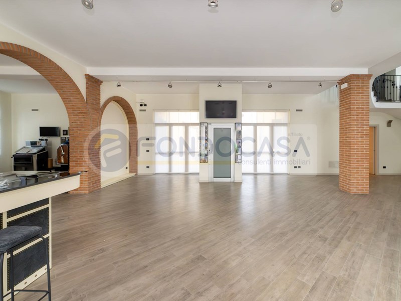 - PIANO TERRA: La soluzione presenta un triplo accesso ed è composta da una stanza adibita a studio, un primo bagno finestrato, un accogliente soggiorno dotato di caminetto, una cucina abitabile, una spaziosa sala da pranzo divisa tramite un elegante arco da un open space provvisto di BAR, avente affaccio su un caratteristico porticato piastrellato con travi a vista e colonne in mattoncino, e provvisto di due bagni finestrati ed accesso ad un BOX di 40mq.