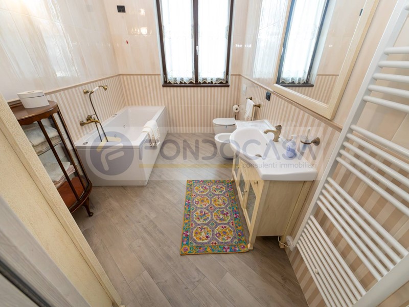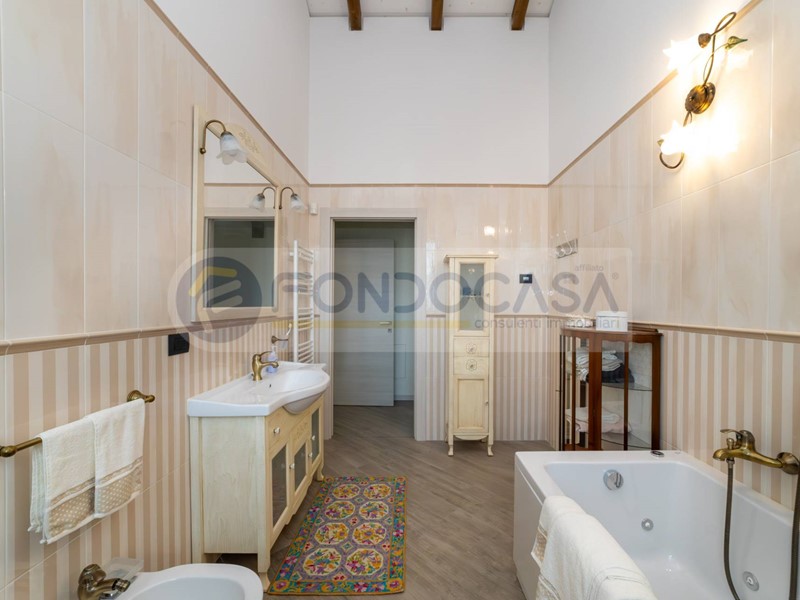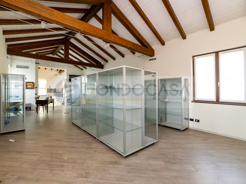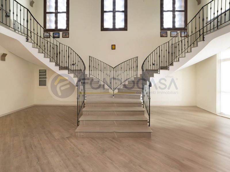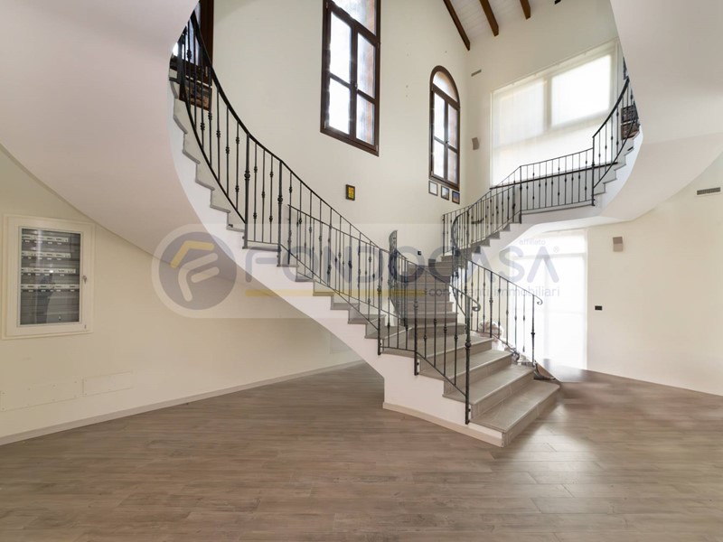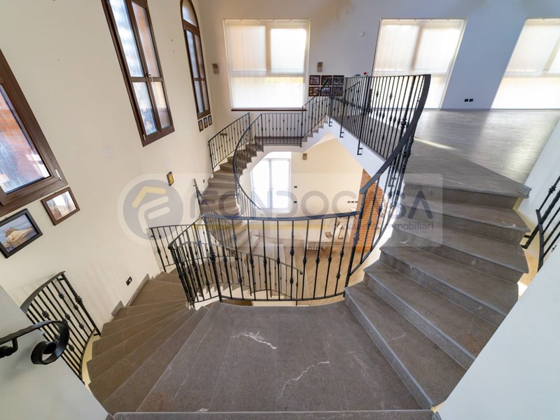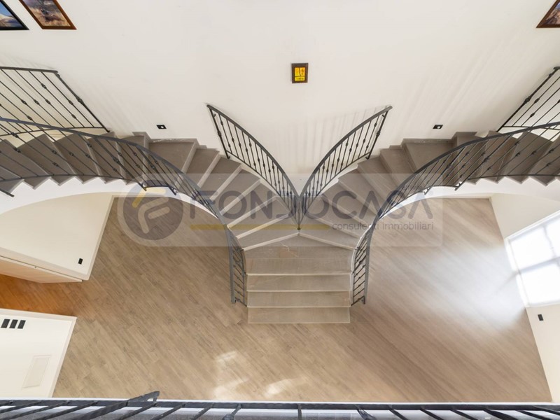 - PIANO PRIMO: Procedendo tramite una magnifica scalinata doppia a chiocciola in marmo impreziosita da un bellissimo corrimano in ferro battuto antico, ma anche tramite l'ascensore interno, si raggiunge il primo piano caratterizzato da soffitti con travi a vista, composto da un secondo ed altrettanto ampio open space, un terrazzo che collega a tre camere da letto matrimoniali ed altri due bagni finestrati, tutte raggiungibili anche tramite ulteriore scala interna della zona soggiorno, ed infine un'ultima spaziosa stanza dal lato opposto.