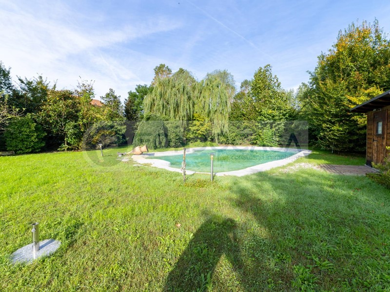 Il vasto giardino circonda ampiamente tutta l'abitazione, è dotato di una splendida PISCINA ed offre un incantevole ed unico scenario naturale.