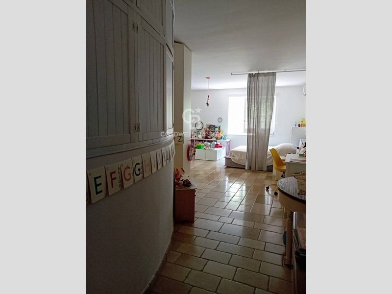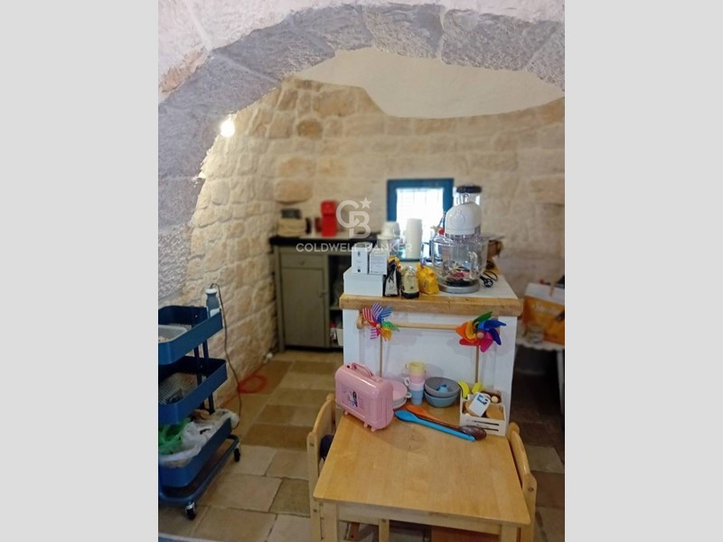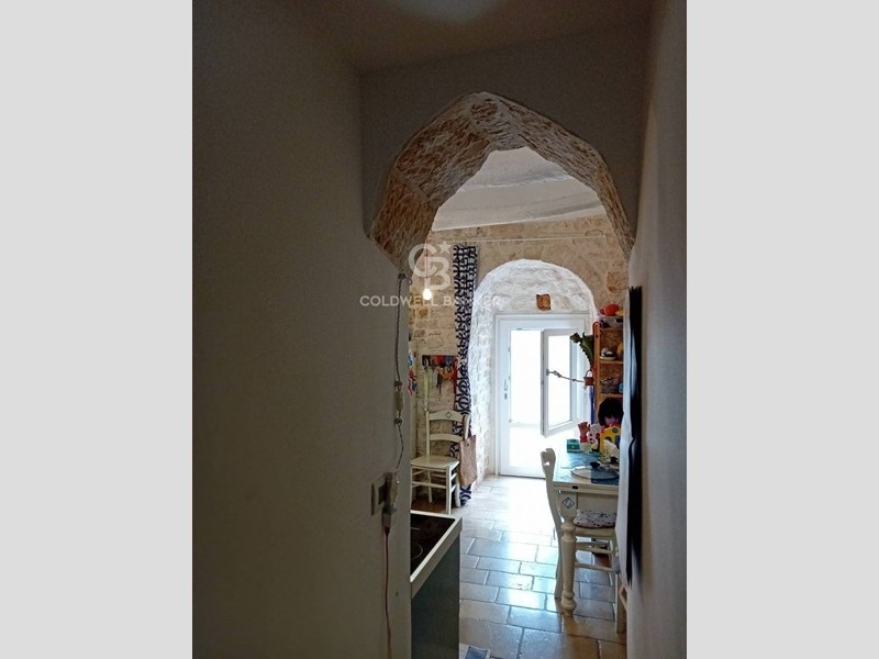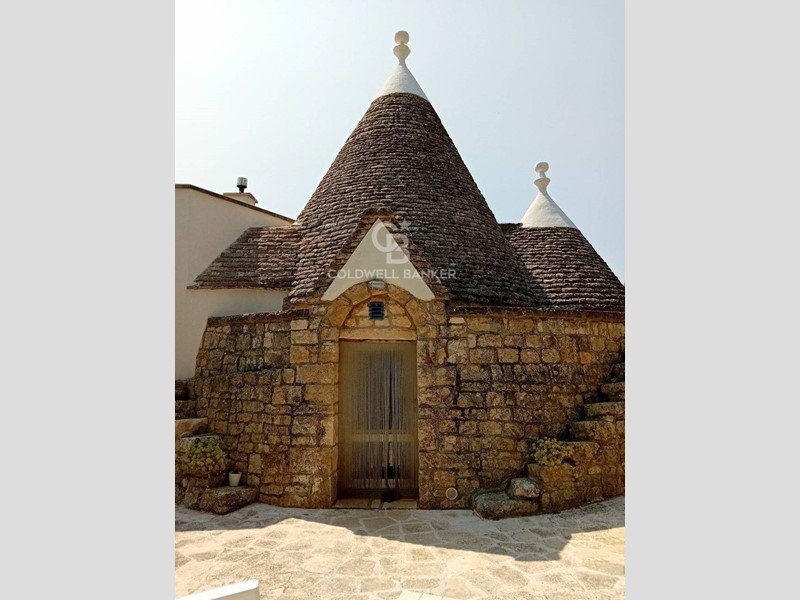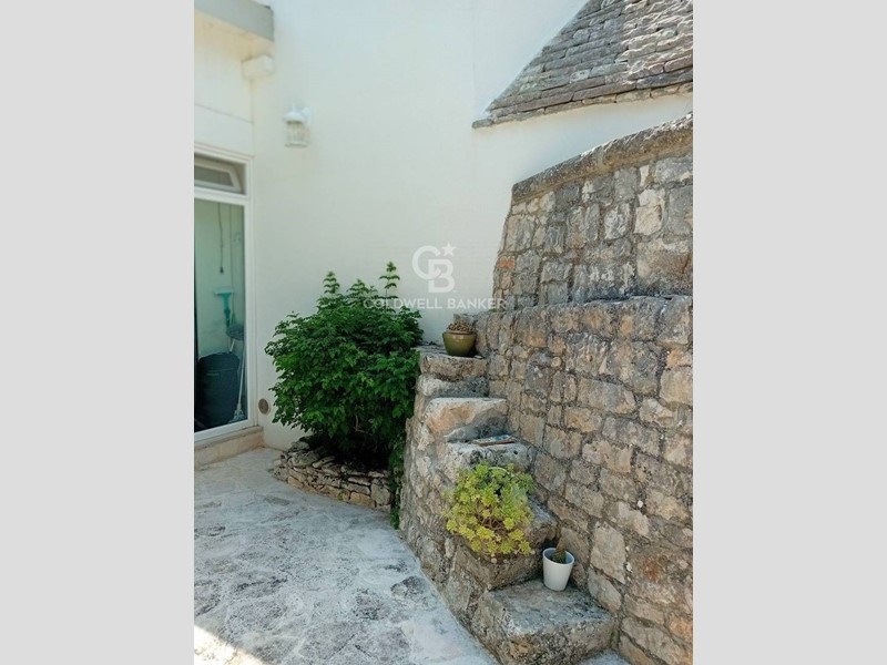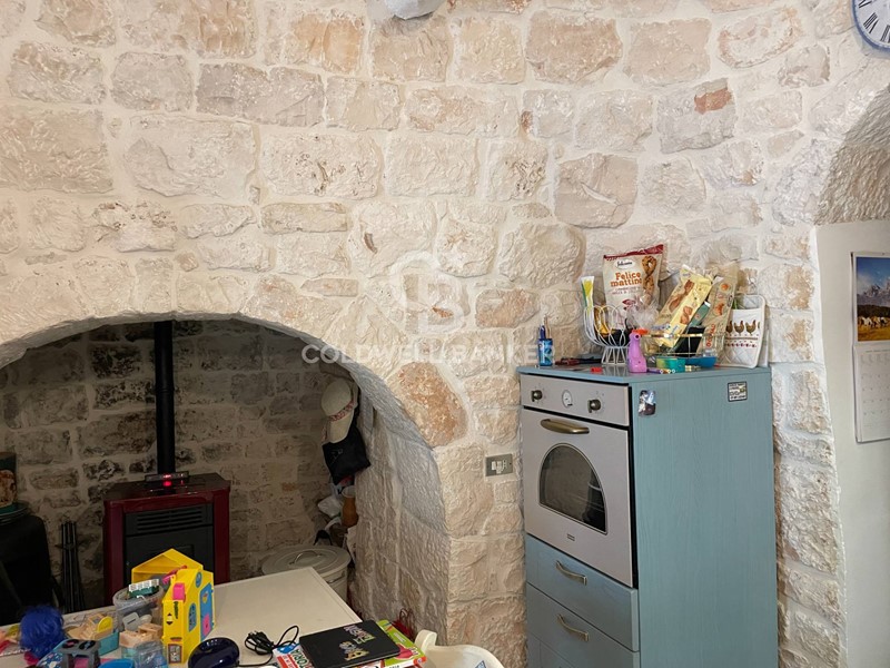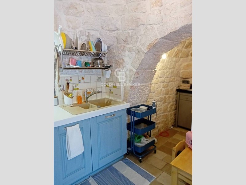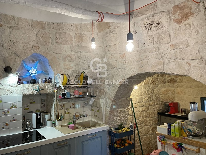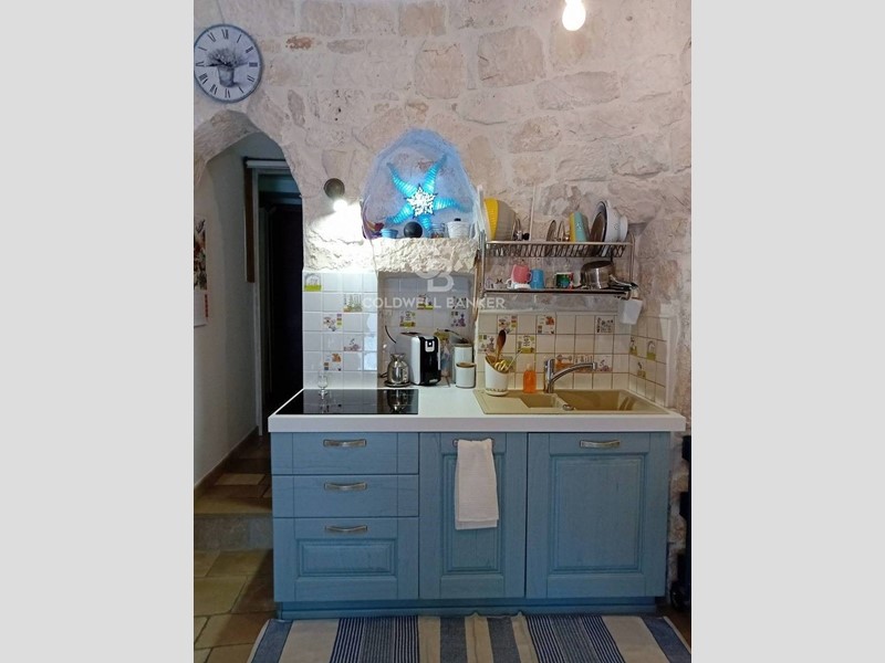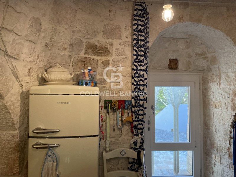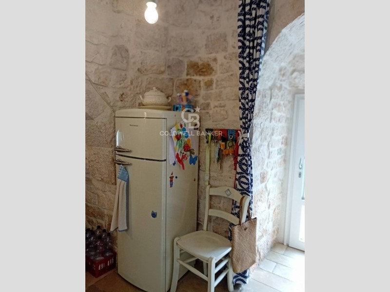 L'abitazione è composta da un ampio e luminoso living, da cui si accede alla spaziosissima camera da letto e al bagno con vasca e doccia. Il tutto è collegato, tramite un suggestivo passaggio, al trullo che ospita una comoda cucina abitabile. La pietra e l'intera struttura del trullo sono state oggetto di una sapiente ristrutturazione, che ha portato alla loro massima bellezza anche le due alcove laterali.