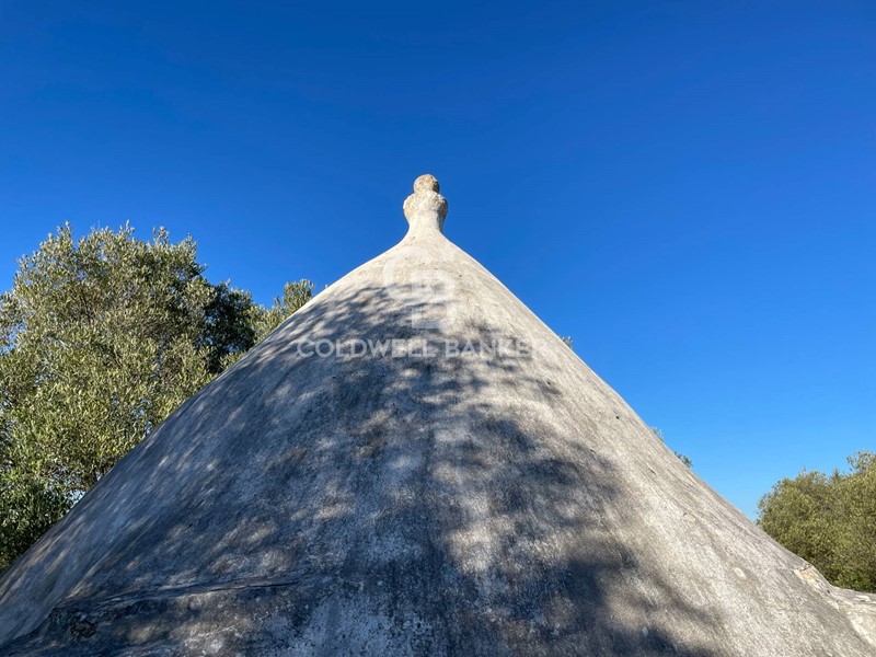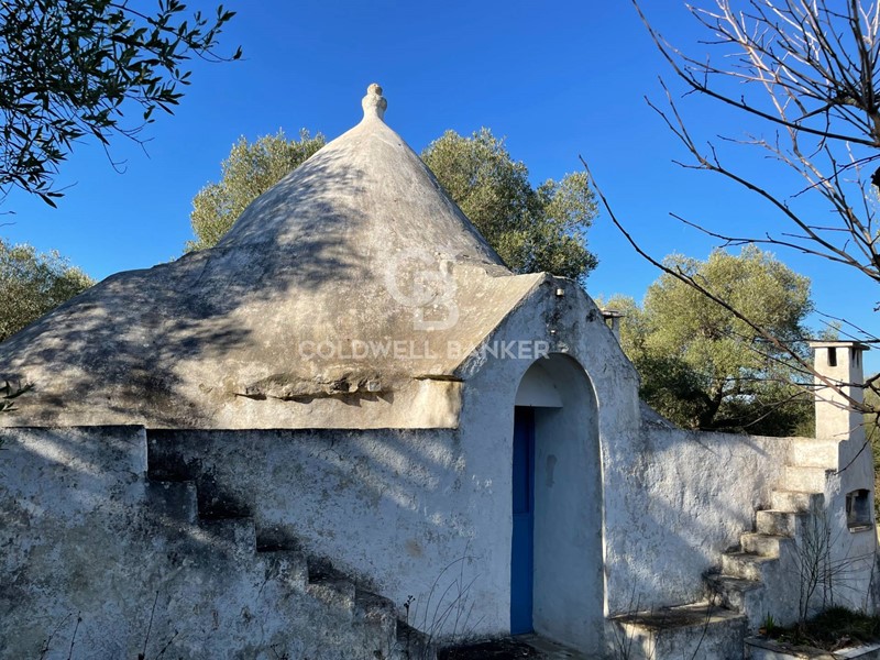 Il trullo è costituito da un vano principale e due alcove laterali ed è circondato da un uliveto secolare. Necessita lavori di ristrutturazione che possono includere un ampliamento di 95 mq di superficie residenziale massima, un porticato con superficie di copertura pari a 30 mq ed una piscina interrata delle dimensioni di 40 mq.