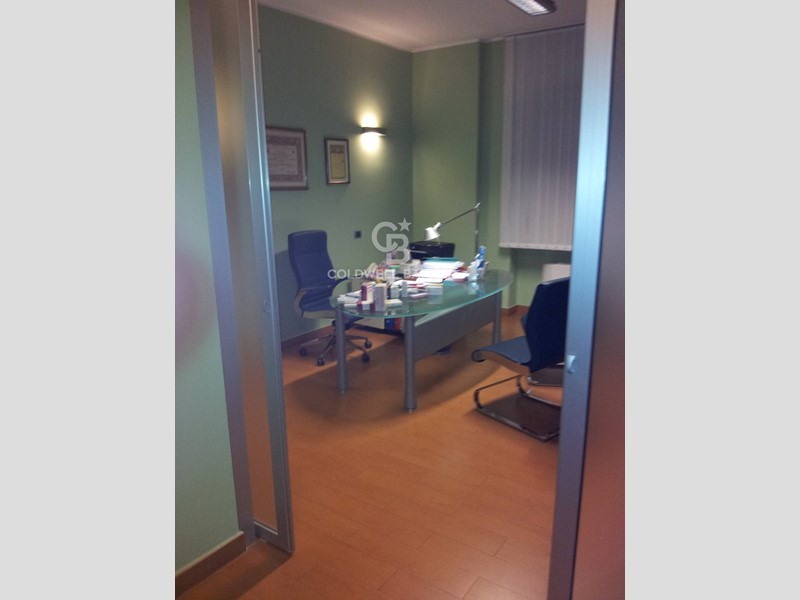 La disposizione dellufficio comprende un ampio ingresso che conduce frontalmente in una sala dattesa spaziosa e luminosa, quattro vani, ai quali si accede da un corridoio e disimpegno. Vi sono due bagni, uno completo con antibagno ed uno comodo bagno per diversamente abili, un ripostiglio.