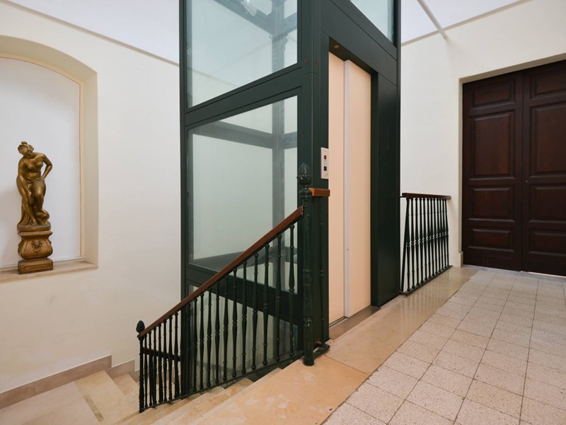 L'antica dimora è articolata su due livelli: a piano terra un imponente androne d'ingresso con portone segnato da colonne maestose e numerosi ed ampi locali pluriuso tutti con volte in pietra. Sempre al piano terra un ampio spazio-giardino esterno ed un moderno ascensore per salire ai piani superiori.