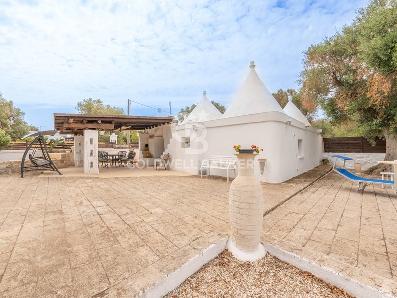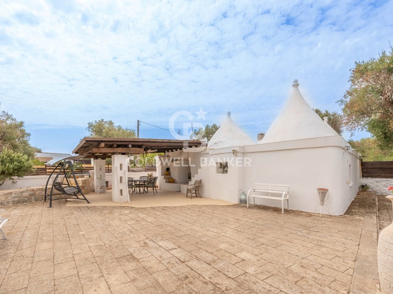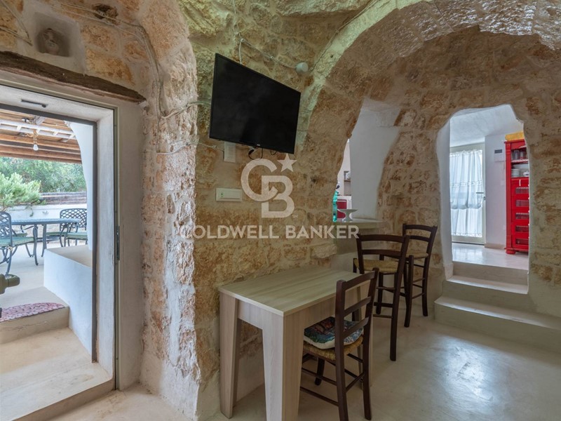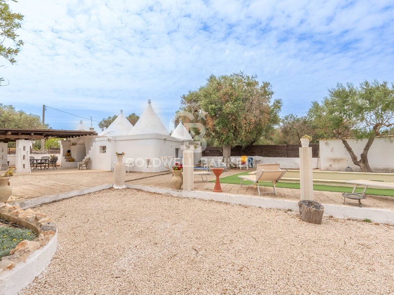 Nella meravigliosa campagna Ostunese, proponiamo in vendita, trullo con piscina in Contrada Grotta sulla provinciale Ostuni-Francavilla, a circa 4 km da Ostuni. La proprietà è composta da 4 trulli di cui il primo adibito a ingresso-soggiorno, il secondo a vano cucina e gli altri due trulli adibiti a camere da letto con caminetto.