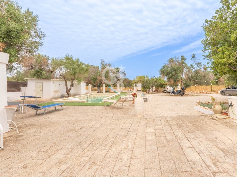 L'immobile dispone di oltre 8000 mq di terreno agricolo totalmente recintato dal caratteristico muretto a secco e piantumato con piante ornamentali, alberi da frutta e ulivi.