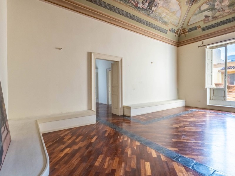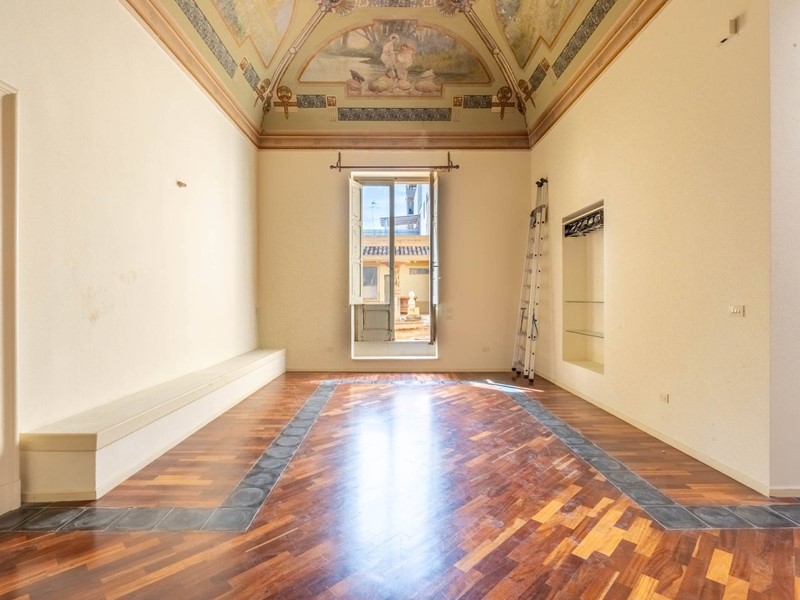 Da Piazza Anime dopo un ampio androne si accede al primo piano su un ampio soggiorno con volte a botte affrescate e firmate, vi è anche uno splendido terrazzo a livello di 80mq circa, decorato con vasi e fontana in cotto fiorentino. Sullo stesso terrazzo vi è una dependance di 30mq con bagno privato, pavimento in cementine d'epoca e tetto in legno.