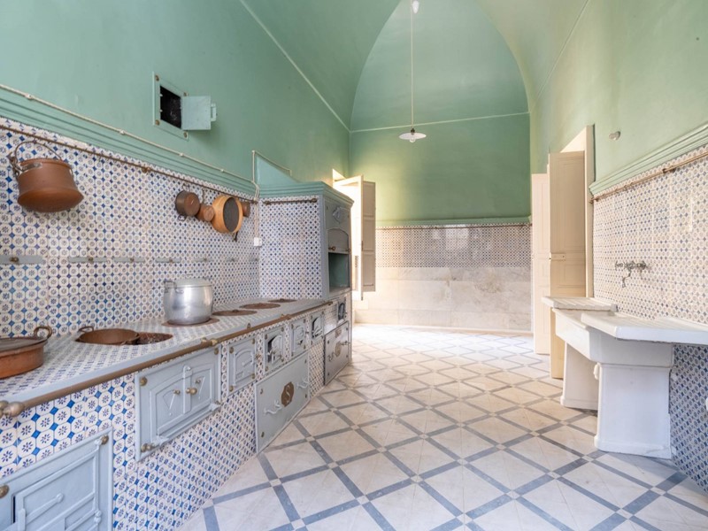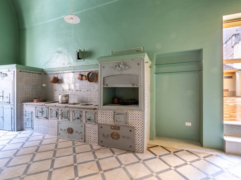 Meravigliosa la cucina, perfettamente tenuta con piano cottura in maioliche dipinte a mano, forno a legna e dispense per il carbone; Vi sono inoltre 3 camere da letto e un bagno.