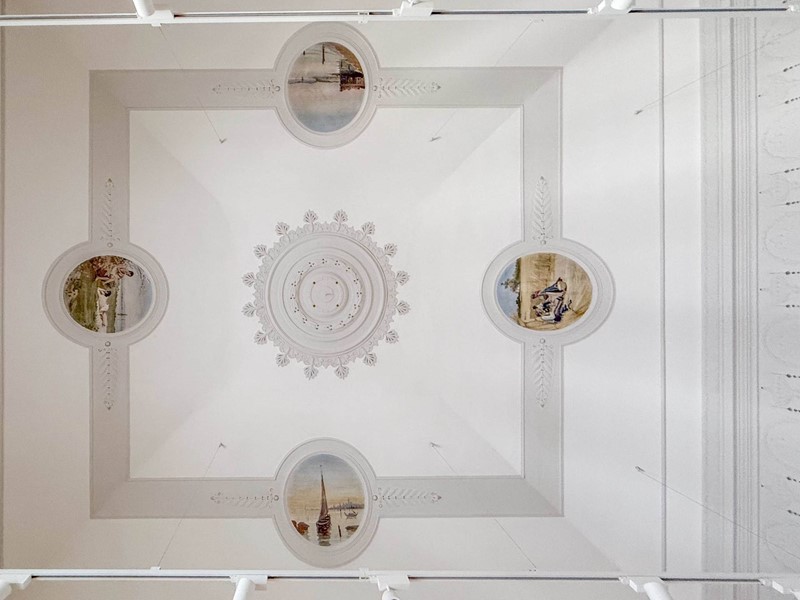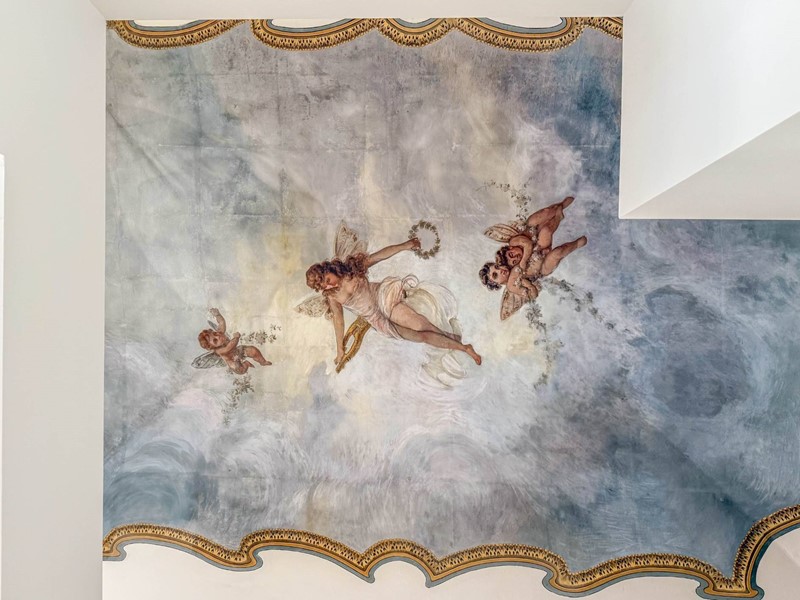 Da Corso Roma, anche quì presente all'ingresso un ampio androne stupendamente affrescato che conduce al primo piano dove vi sono ben cinque grandi vani, tre dei quali con suggestivi affreschi d'epoca e servizi.