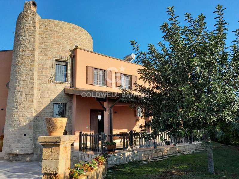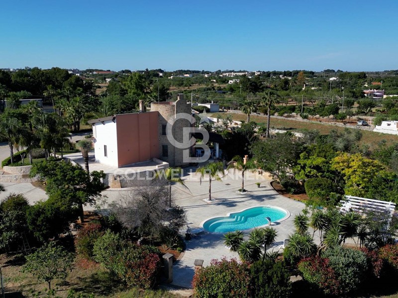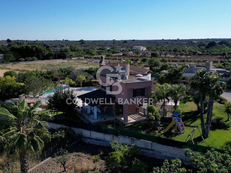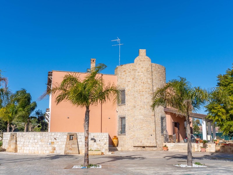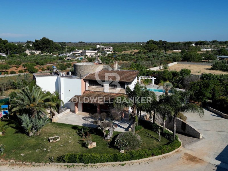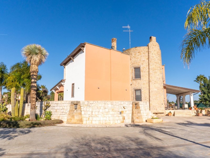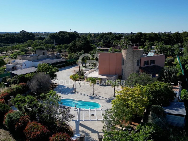 In una zona tranquilla e residenziale di San Vito dei Normanni, è stata realizzata dai proprietari questa affascinante abitazione su tre livelli caratterizzata da una particolare torretta in pietra che è il fulcro della casa che è così composta; al piano terra dal salone di ingresso con camino, cucina abitabile con un secondo camino e da tutta la zona giorno si accede al bellissimo giardino. Pochi gradini ci portano nella zona notte con la grande camera padronale con cabina armadio, altre tre camere da letto e una sala da bagno d'atri tempi, con le pareti decorate da un raffinato mosaico. Dalla zona giorno si accede alla taverna attrezzata e utilizzata come miniappartamento con ingresso indipendente dal giardino. La villa ha spazi esterni ben organizzati, dai grandi patii a servizio della cucina, alla zona forno con ampio pergolato per organizzare cene all'aperto al bellissimo spazio intorno alla piscina e a finire con un rigoglioso e ricco agrumeto.