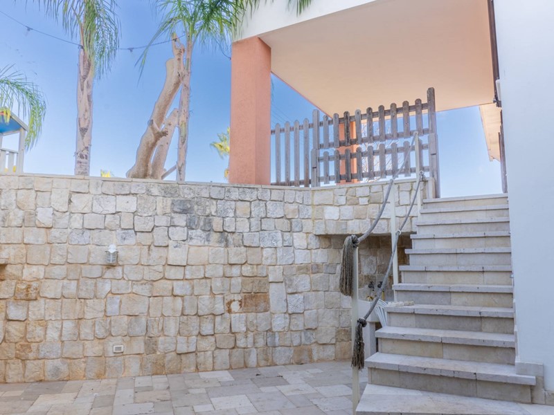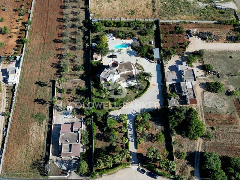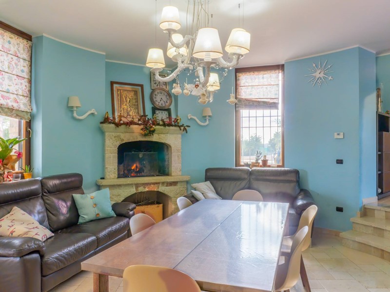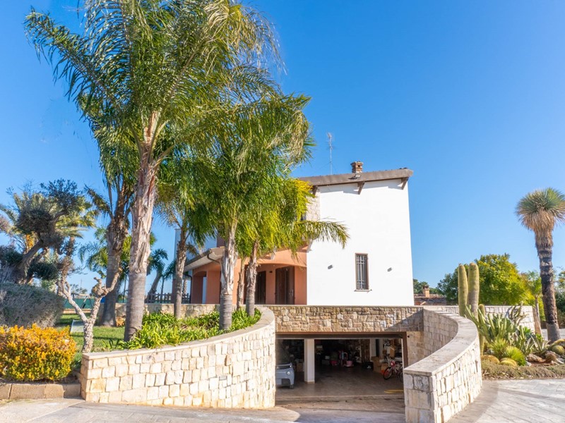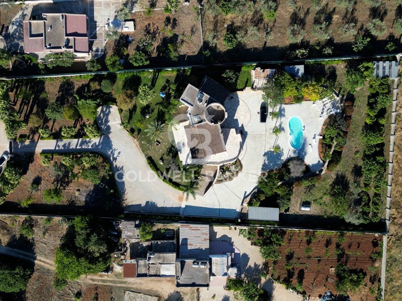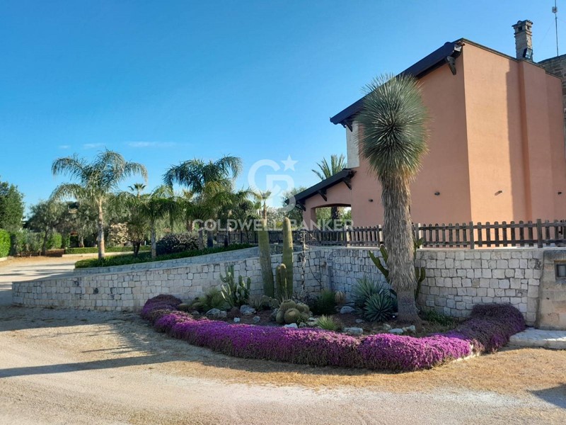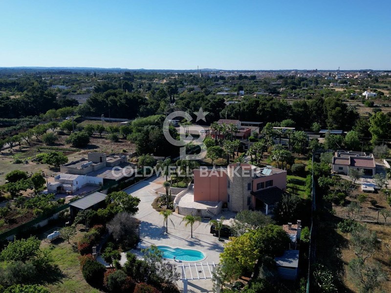 In una zona tranquilla e residenziale di San Vito dei Normanni, è stata realizzata dai proprietari questa affascinante abitazione su tre livelli caratterizzata da una particolare torretta in pietra che è il fulcro della casa che è così composta; al piano terra dal salone di ingresso con camino, cucina abitabile con un secondo camino e da tutta la zona giorno si accede al bellissimo giardino. Pochi gradini ci portano nella zona notte con la grande camera padronale con cabina armadio, altre tre camere da letto e una sala da bagno d'atri tempi, con le pareti decorate da un raffinato mosaico. Dalla zona giorno si accede alla taverna attrezzata e utilizzata come miniappartamento con ingresso indipendente dal giardino. La villa ha spazi esterni ben organizzati, dai grandi patii a servizio della cucina, alla zona forno con ampio pergolato per organizzare cene all'aperto al bellissimo spazio intorno alla piscina e a finire con un rigoglioso e ricco agrumeto.