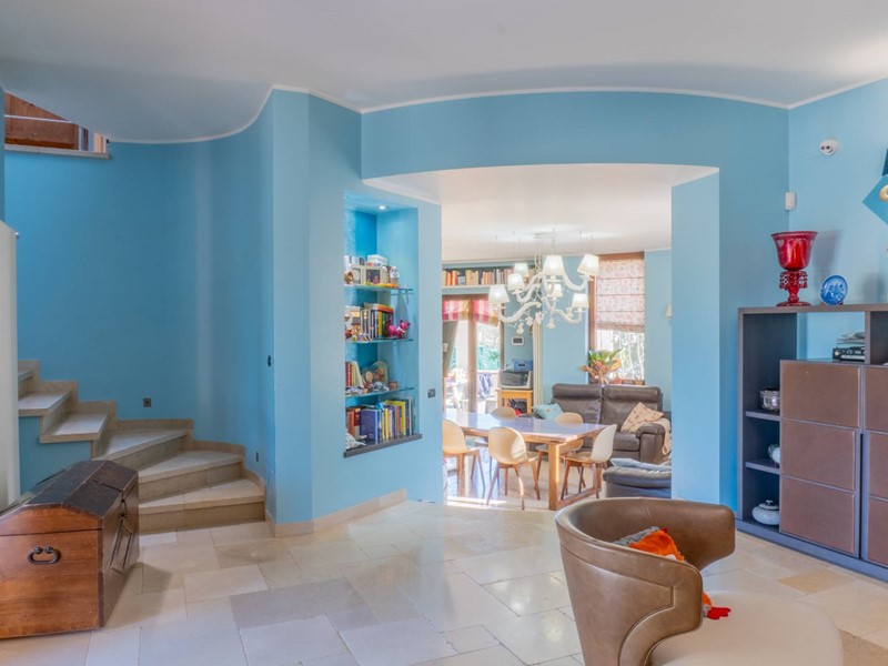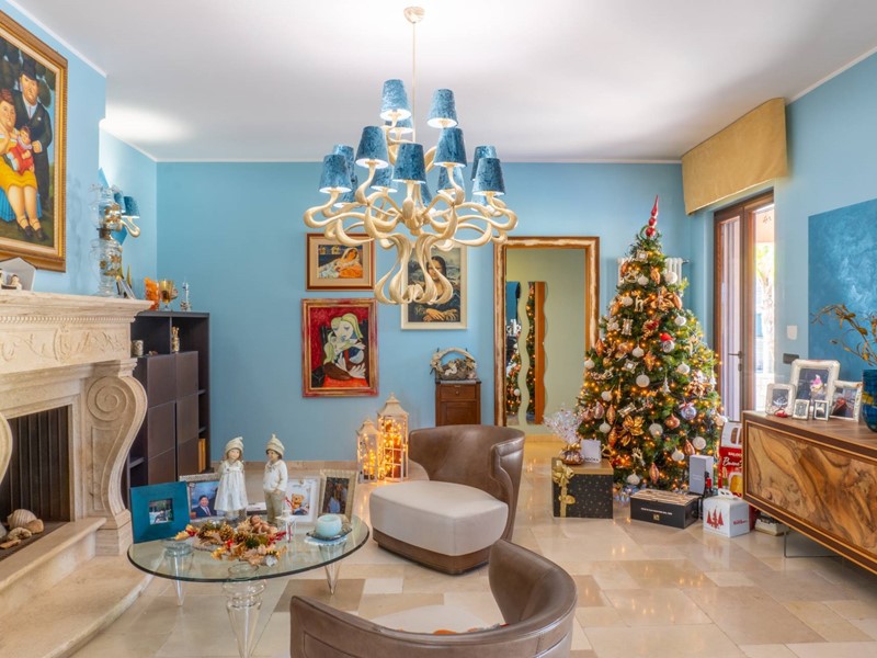 Gli interni si sviluppano in 8 locali, tra cui spaziose camere da letto, luminosi soggiorni e una moderna cucina completamente arredata, perfetta per chi ama cucinare e ricevere ospiti, oltre al grande box auto. L'arredamento, curato nei minimi dettagli, rende gli ambienti eleganti e accoglienti, creando un'atmosfera calda e raffinata.
