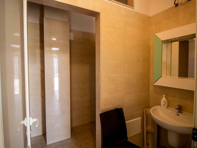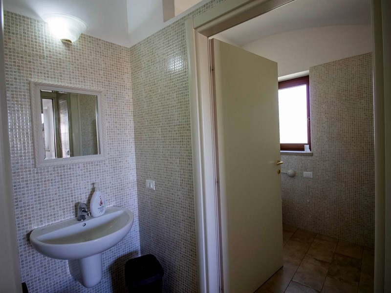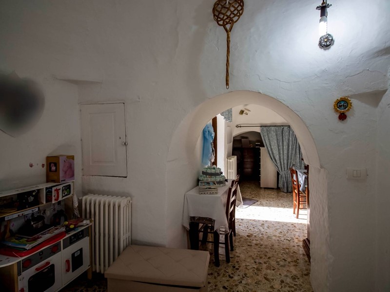 Allinterno della lamia troviamo davanti una grande sala da pranzo /colazione con dietro bagno ed antibagno completamente in pietra. Subito dopo grande laboratorio con macchinari da lavoro con porta sul retro delle soluzioni abitative ed ulteriore bagno con doccia, dotato di riscaldamento con termosifoni.