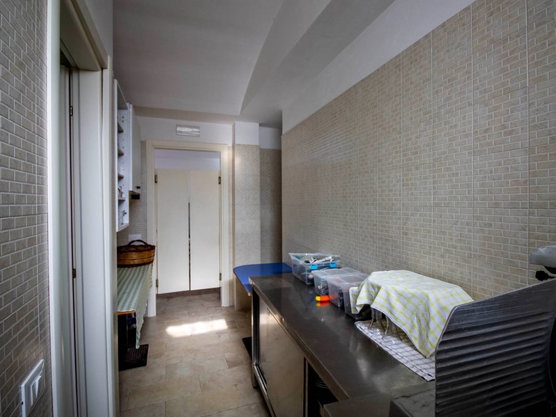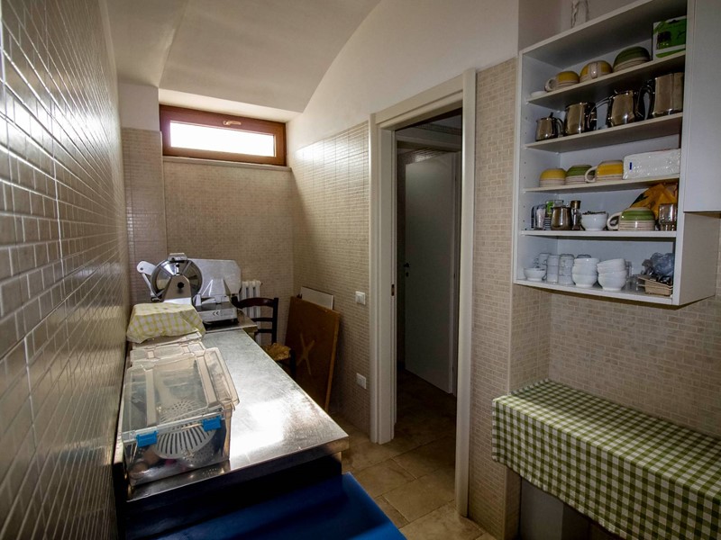 Staccato dal corpo troviamo un'altra grande sala da pranzo, con alte volte completamente ristrutturata, con archi antichi, di generosa metratura ed ingresso autonomo, annessa ad un grande laboratorio sempre ristrutturato e saletta collegata allampio caseificio dotato di due celle frigorifere e di tutte le attrezzature occorrenti per la lavorazione dei caseari annesso ad un altro locale tecnico.