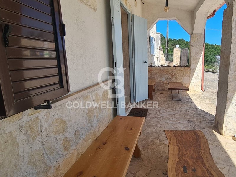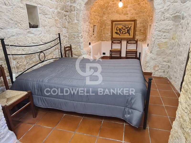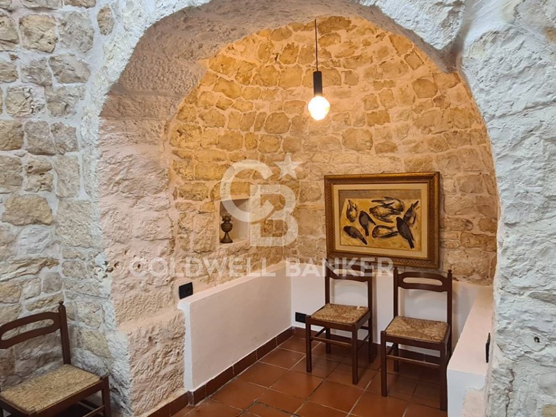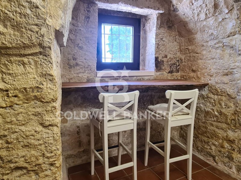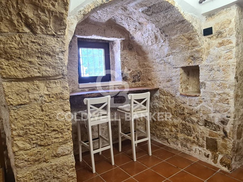 L'immobile si compone di un soggiorno con una finestra sulla cucina attrezzata a vista, due stanze da letto matrimoniali, piu' un ulteriore camera da letto ubicata nel trullo nel quale vi è un caminetto e un angolo ideato per la colazione.