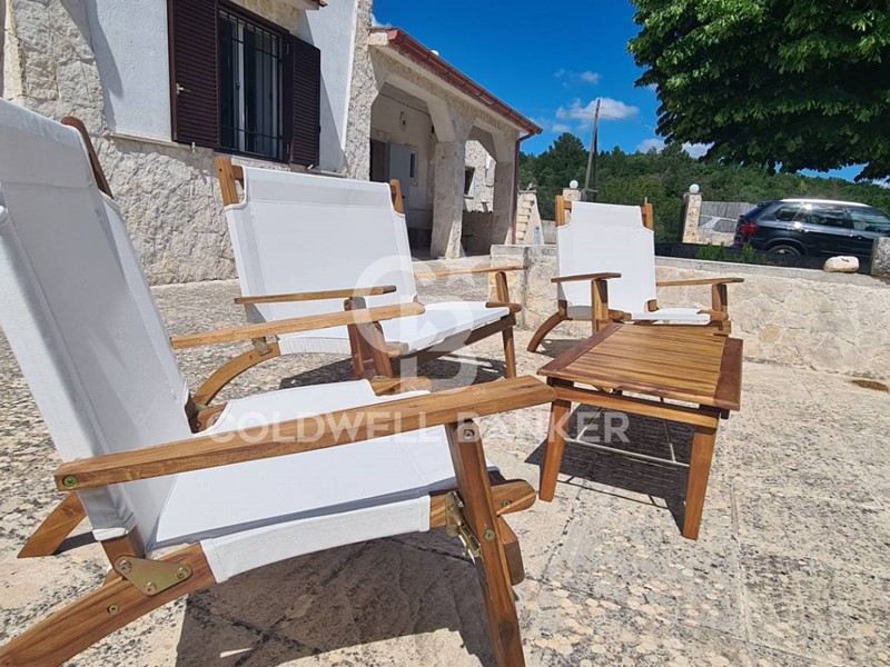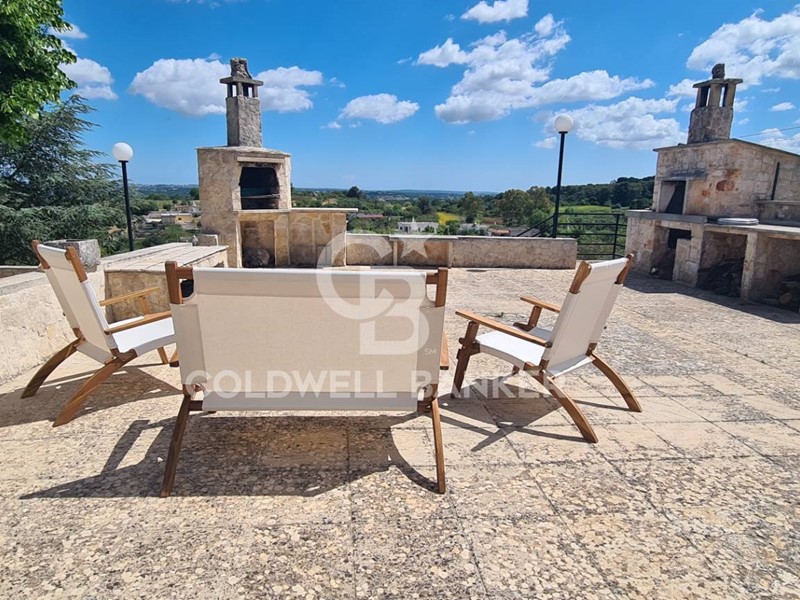 Esternamente, possiamo godere del meraviglioso panorama, circondati dal verde e dall'appagante silenzio della campagna di Martina Franca, e utilizzare per le serate o le giornate con gli ospiti, l'angolo attrezzato con il forno a legna e quello con il barbecue, rilassandosi seduti intorno ai tavoli all'ombra di un meraviglioso platano.
