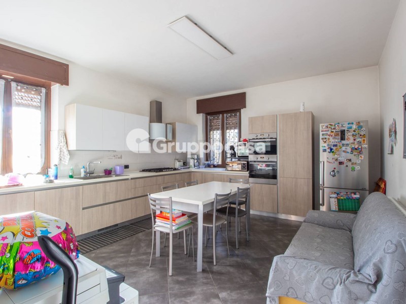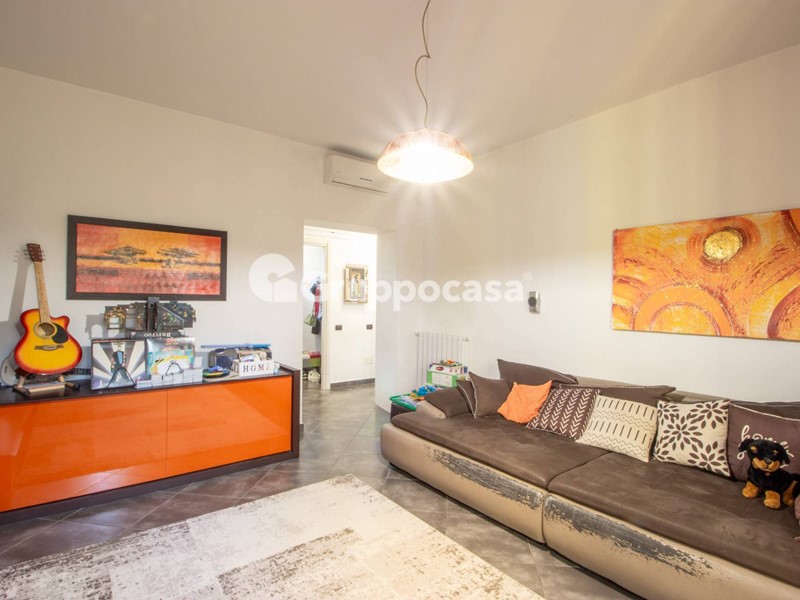 Il quadrilocale, ristrutturato nel 2013, disposto su due piani è composto da soggiorno, cucina abitabile, due camere da letto matrimoniali, cameretta, doppi servizi, lavanderia, ripostiglio e due balconi.