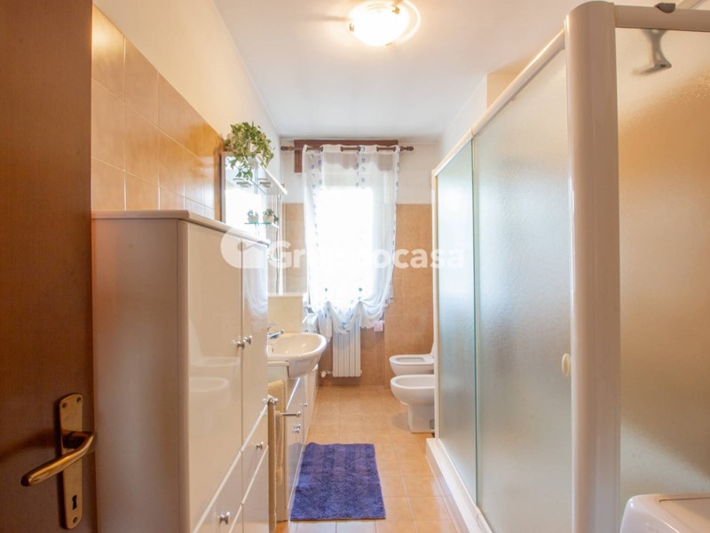 Il trilocale è composto da ingresso, soggiorno, cucina abitabile, ripostiglio, due camere da letto, bagno e due balconi.
