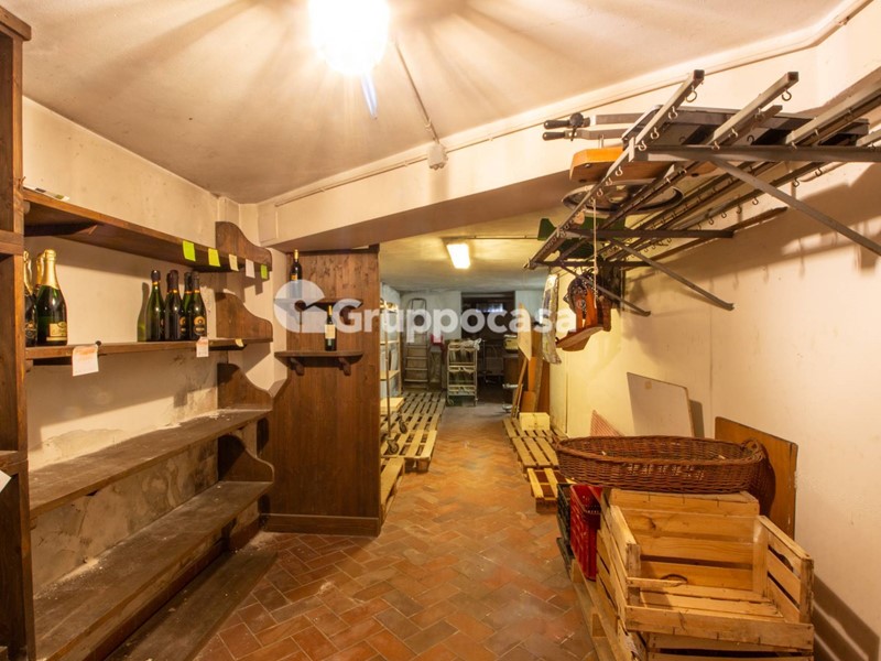 al piano seminterrato abbiamo locale di sgombero, cantina, magazzino, centrale termica, locale lavanderia, portici, ripostigli, oltre due box rispettivamente di 16 e 18 mq; al piano terra troviamo ampie sale per ricevimenti, angolo bar, cucina, servizi, spogliatoio, ufficio, portico e veranda; il piano primo presenta quattro appartamenti di cui uno di due locali con cucina abitabile, bagno e terrazzo; due appartamenti di due locali con angolo cottura, bagno e balcone cadauno; un ultimo appartamento di quattro locali con cucina abitabile, doppi servizi, balcone e terrazzo.
