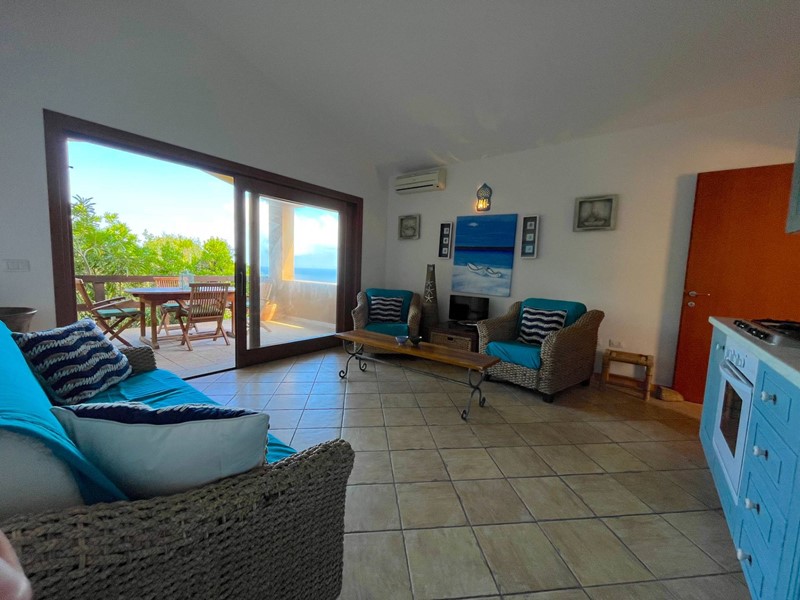 La casa è composta da un ingresso, un ampio soggiorno con angolo cottura dal quale, attraverso un'ampia veranda, si acceda alla grande veranda coperta da cui si gode di una spettacolare vista sul mare, una camera da letto matrimoniale, una camera con due letti singoli e un bagno con doccia.