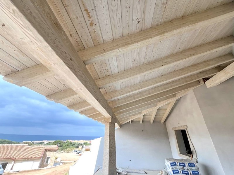 Le abitazioni vengono costruite ad alta efficienza energetica, in classe A, ove lisolamento termico è garantito da pareti di NORMABLOK a taglio termico, da tetti isolati realizzati con travi di legno bianco spazzolato a vista e da infissi e serramenti in alluminio a taglio termico.