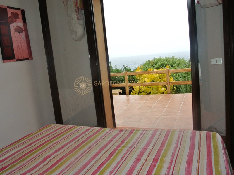 Zona giorno con veranda vista mare suddivisa in 3 livelli composta da salotto con camino, una zona pranzo e cucina, una camera da letto matrimoniale con veranda vista mare e un bagno;