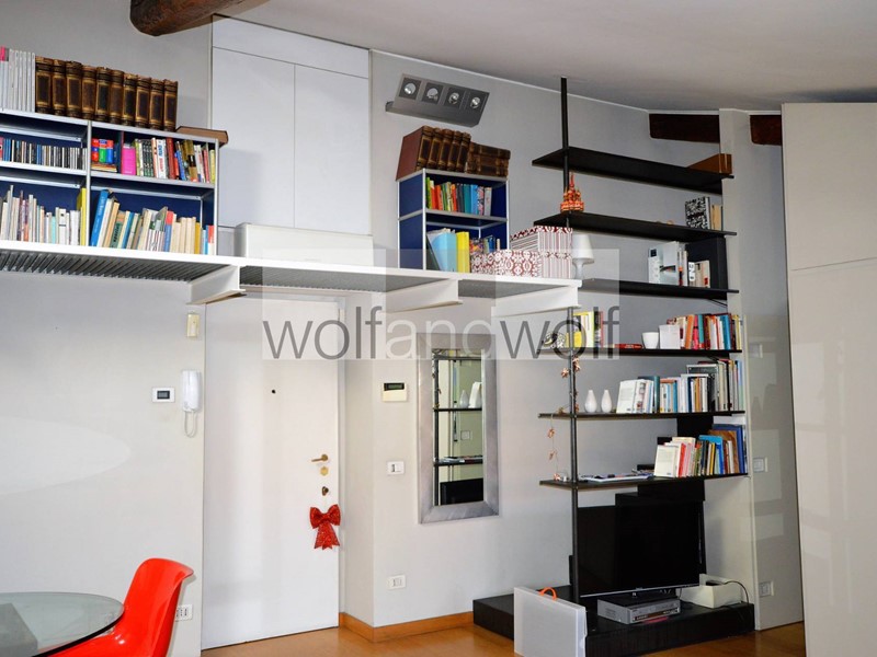 La casa è completamente arredata e si compone di ingresso con soggiorno, zona pranzo con cucina a vista, completa di tutti gli elettrodomestici, camera matrimoniale con bagno e una comoda e pratica zona soppalco. L'appartamento è stato oggetto di ristrutturazione nel 2015, gli spazi sono stati studiati e sfruttati al loro meglio con soluzioni e arredi su misura. Appartamento è molto silenzioso, luminoso, esposto a Ovest, pavimenti in parquet, doppi vetri, riscaldamento autonomo, aria condizionata con split, impianto di allarme. Posto bicicletta nel cortile.