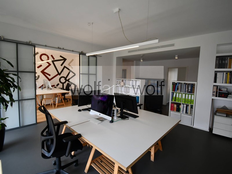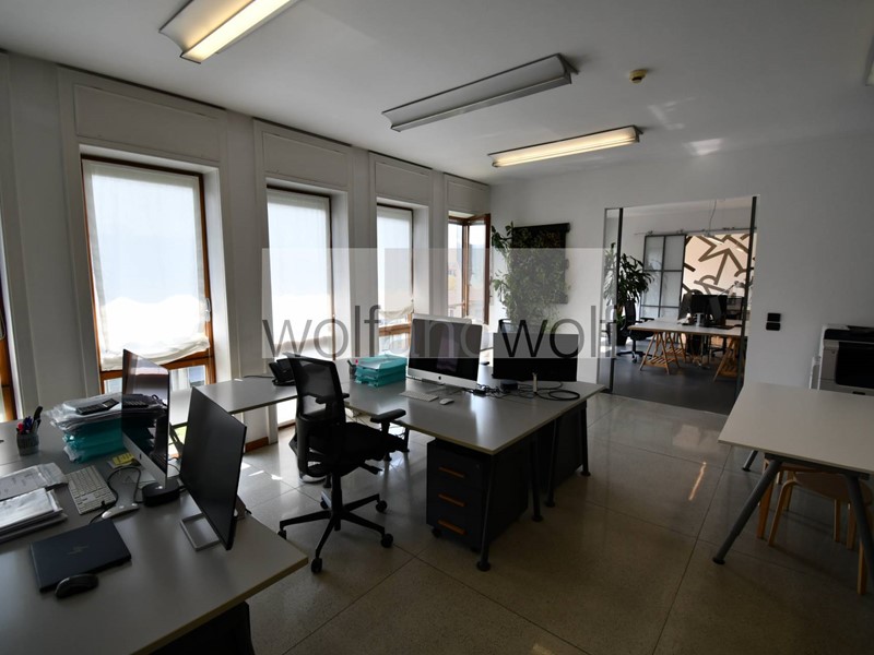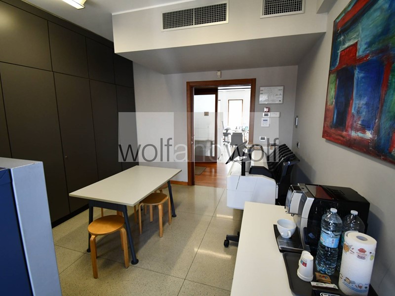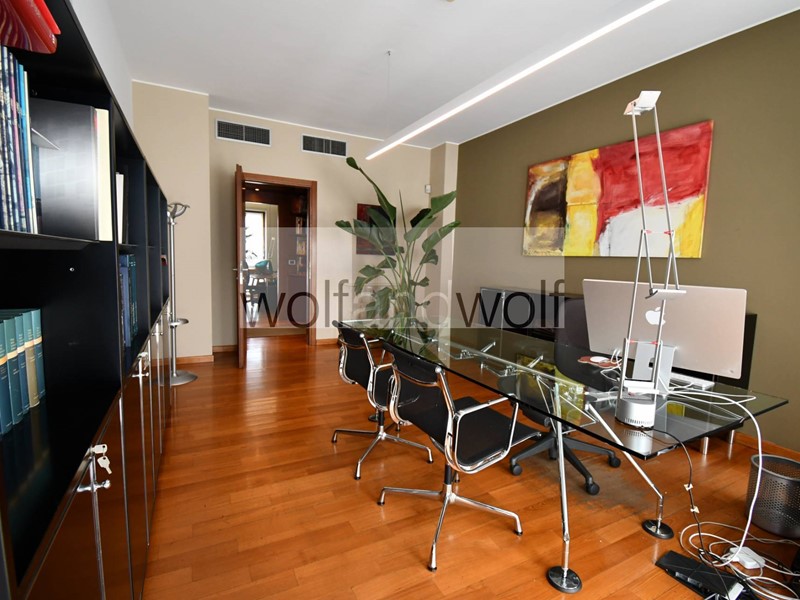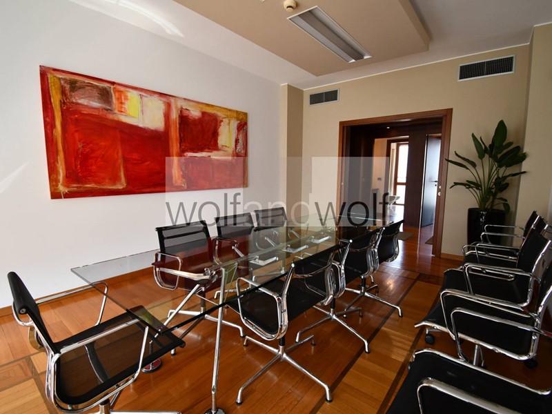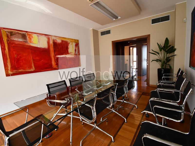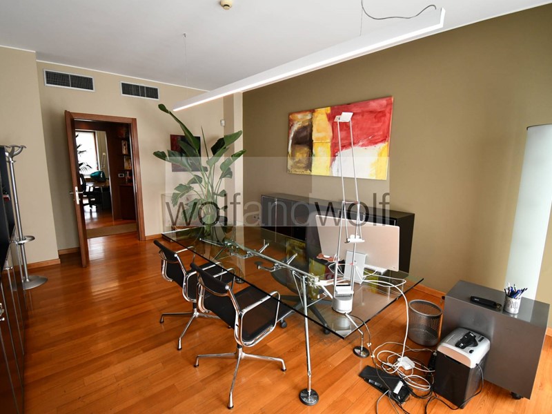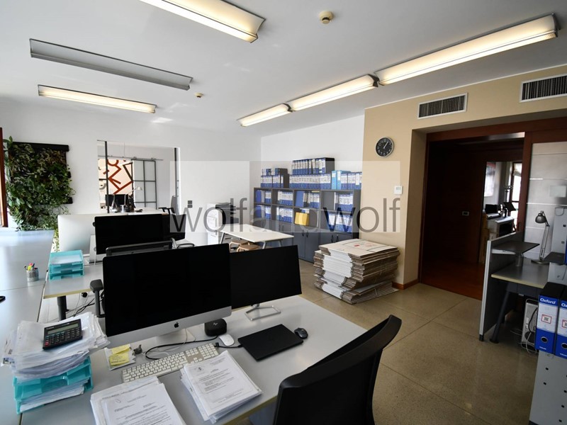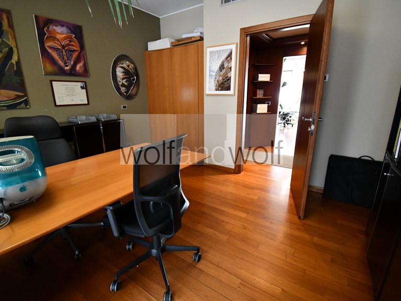 Lufficio occupa interamente il settimo piano ed è dotato di un doppio ingresso, quindi si presta a molteplici interpretazioni e suddivisioni degli spazi interni. Oggi sono presenti tre uffici direzionali, una grande sala riunioni, tre grandi open space, due uffici per il personale, una spaziosa area break con cucina ,oltre ai doppi servizi direzionali e ai servizi per i dipendenti. Completano la proprietà due spaziose cantine ed un box auto nel palazzo(disponibile con prezzo )