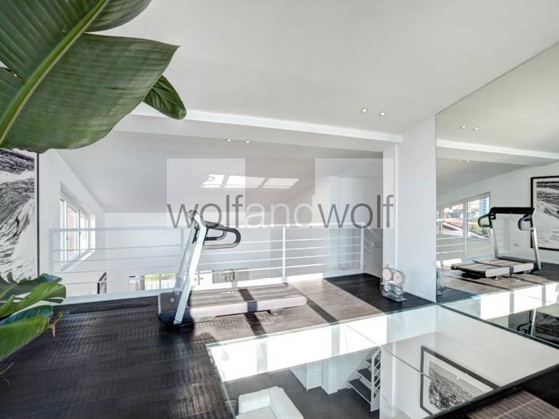 L'attico presenta una distribuzione ottimale degli spazi, con un'ampia zona living arricchita da vetrate a tutta altezza che si affaccia su uno spazioso terrazzo panoramico, completo di piscina privata. La cucina a vista, moderna e completamente attrezzata, si integra perfettamente con l'ambiente circostante. La zona notte comprende tre camere da letto, tutte dotate di bagno en suite elegantemente rifiniti. Completa la proprietà un doppio box auto.